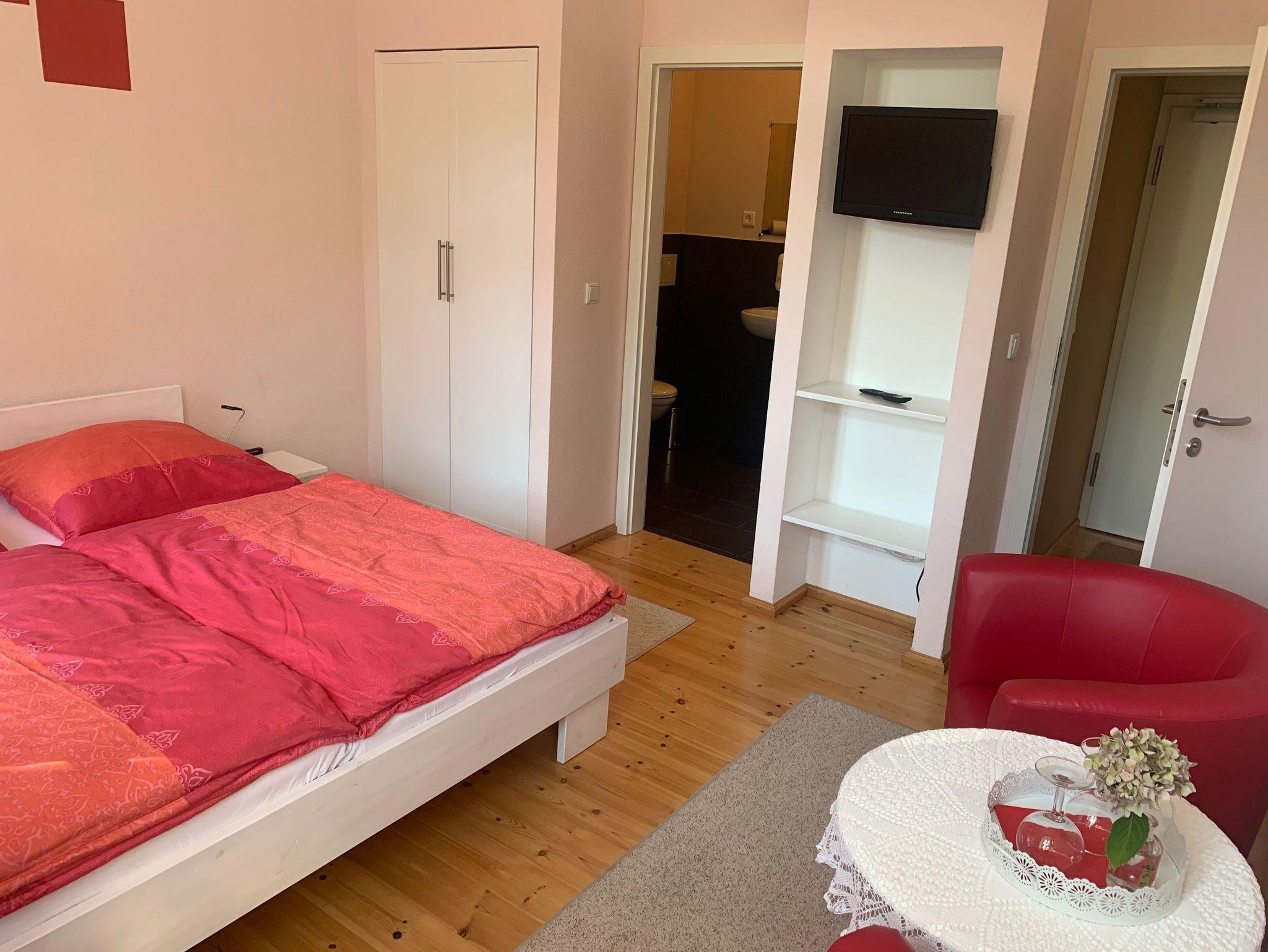 Das Zimmer verfügt über ausreichend Platz für zwei Personen. Zu jedem Zimmer gehört selbstverständlich ein eigenes modernes Badezimmer.
