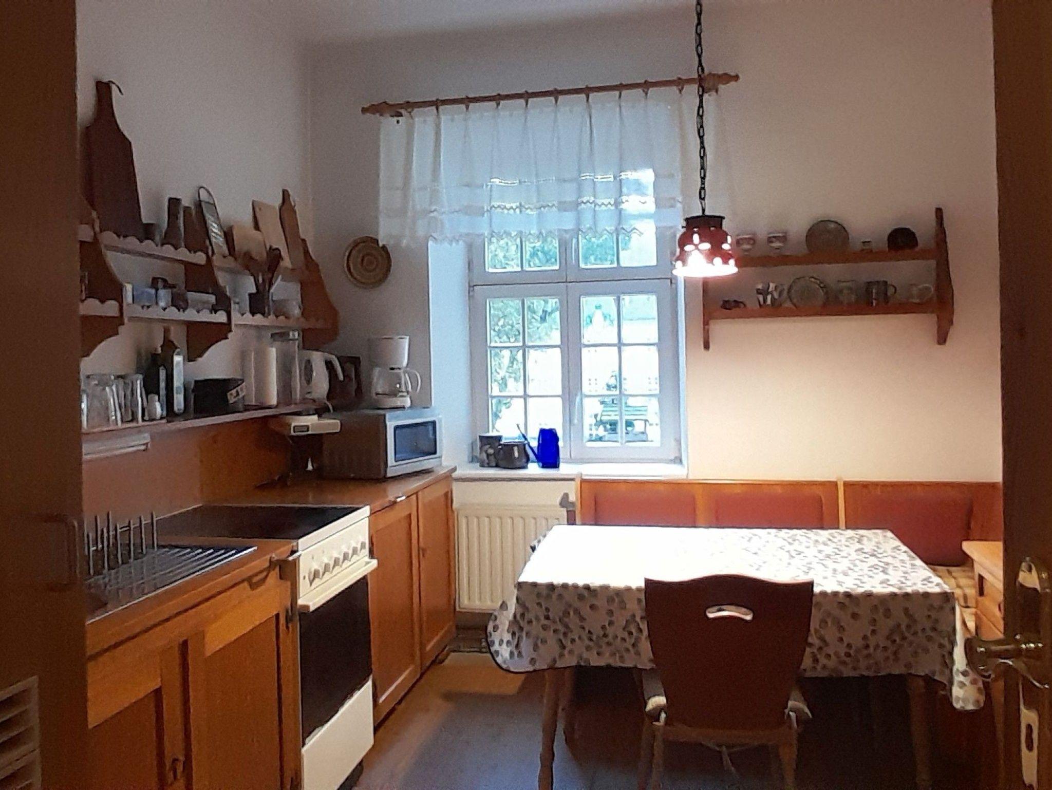Die großzügige, rund 100 m² große Ferienwohnung bietet Ihnen viel Platz und Komfort: Sie umfasst ein helles Wohnzimmer, ein gemütliches Esszimmer, eine voll ausgestattete Küche, ein separates Büro, ein Bad sowie zwei Schlafzimmer.
