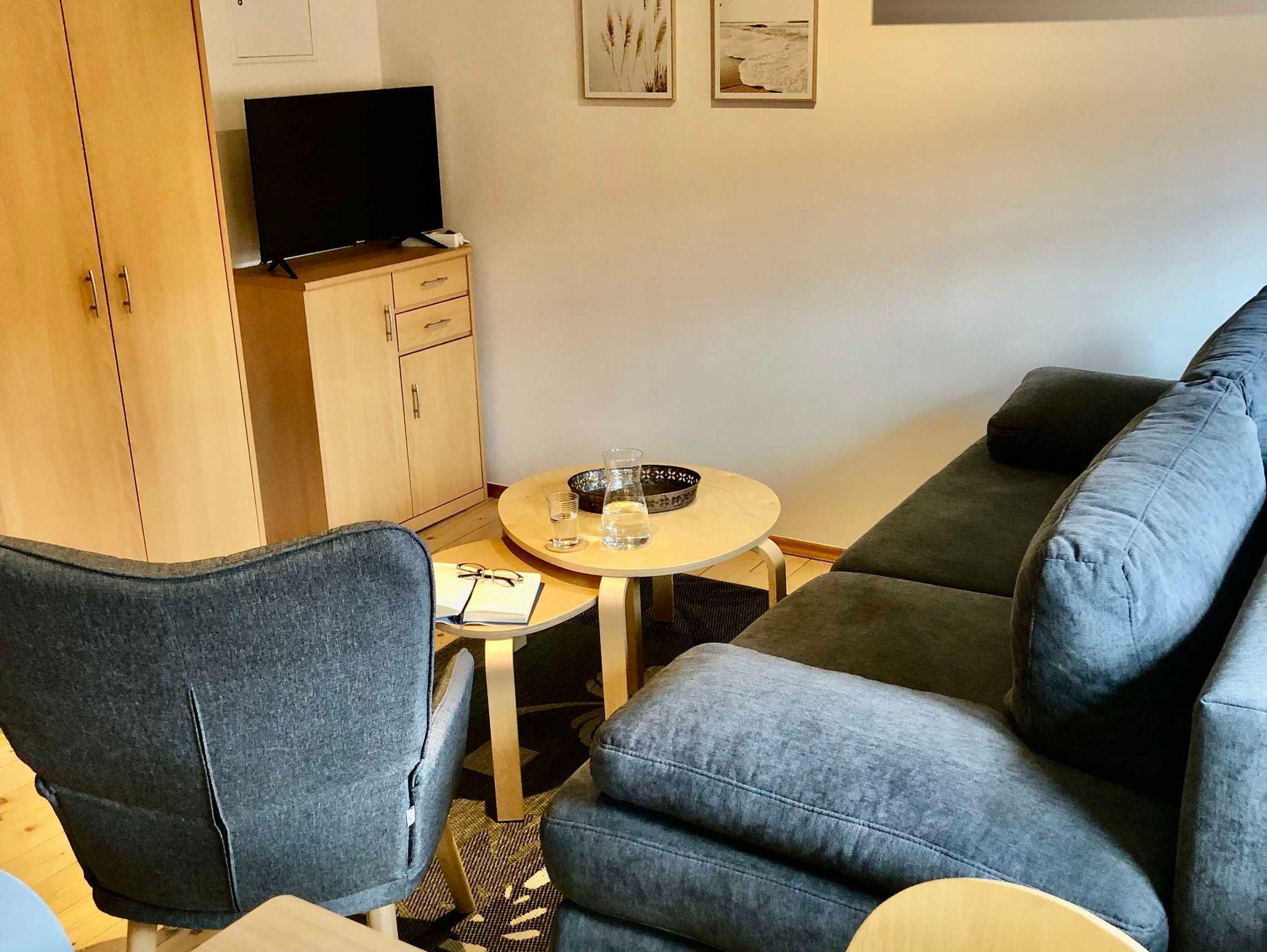 Die Landeskrone Dachgeschoss-Maisonette befindet sich unter dem Dach und verfügt über ein Schlafzimmer mit 2 Einzelbetten (90x200). Weiterhin befindet sich im Wohnbereich eine Schlafcouch. Eine Küchenzeile sowie ein Badezimmer mit Dusche ist vorhanden.