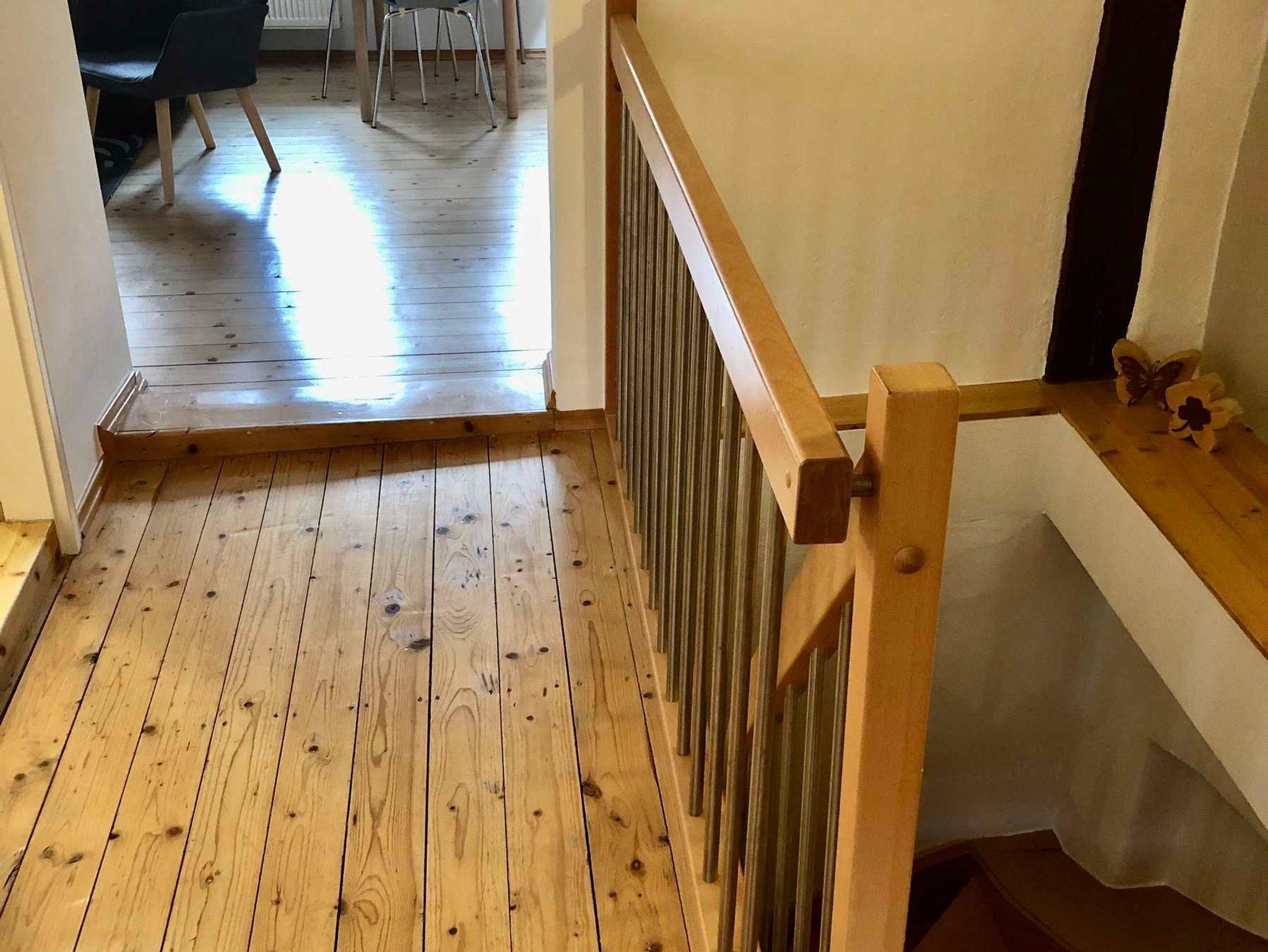 In der Maisonett-Ferienwohnung Landeskrone blicken Sie in die historische Altstadt von Görlitz. Die Küchenecke unter altem Gebälk, der Wohn-/ Schlafraum mit Blick zur Neiße und der Schlafraum unter dem Dach bieten Übernachtung für bis zu vier Personen. Diese Wohnung ist eine Dachwohnung mit Holzbalken. Aufgrund der Erhaltung des historischen Baustils beträgt die Durchgangshöhe teilweise nur 1,80 m.