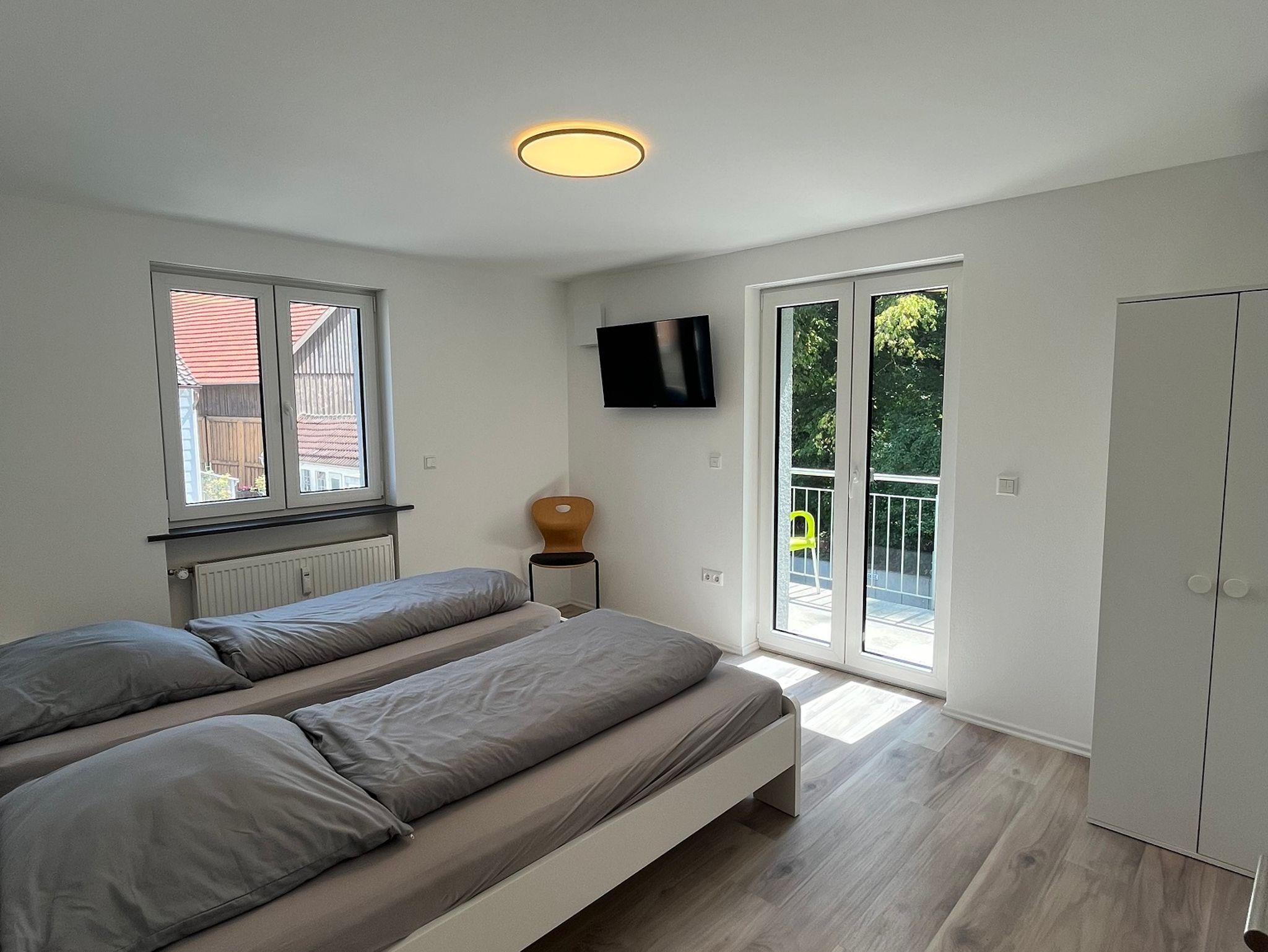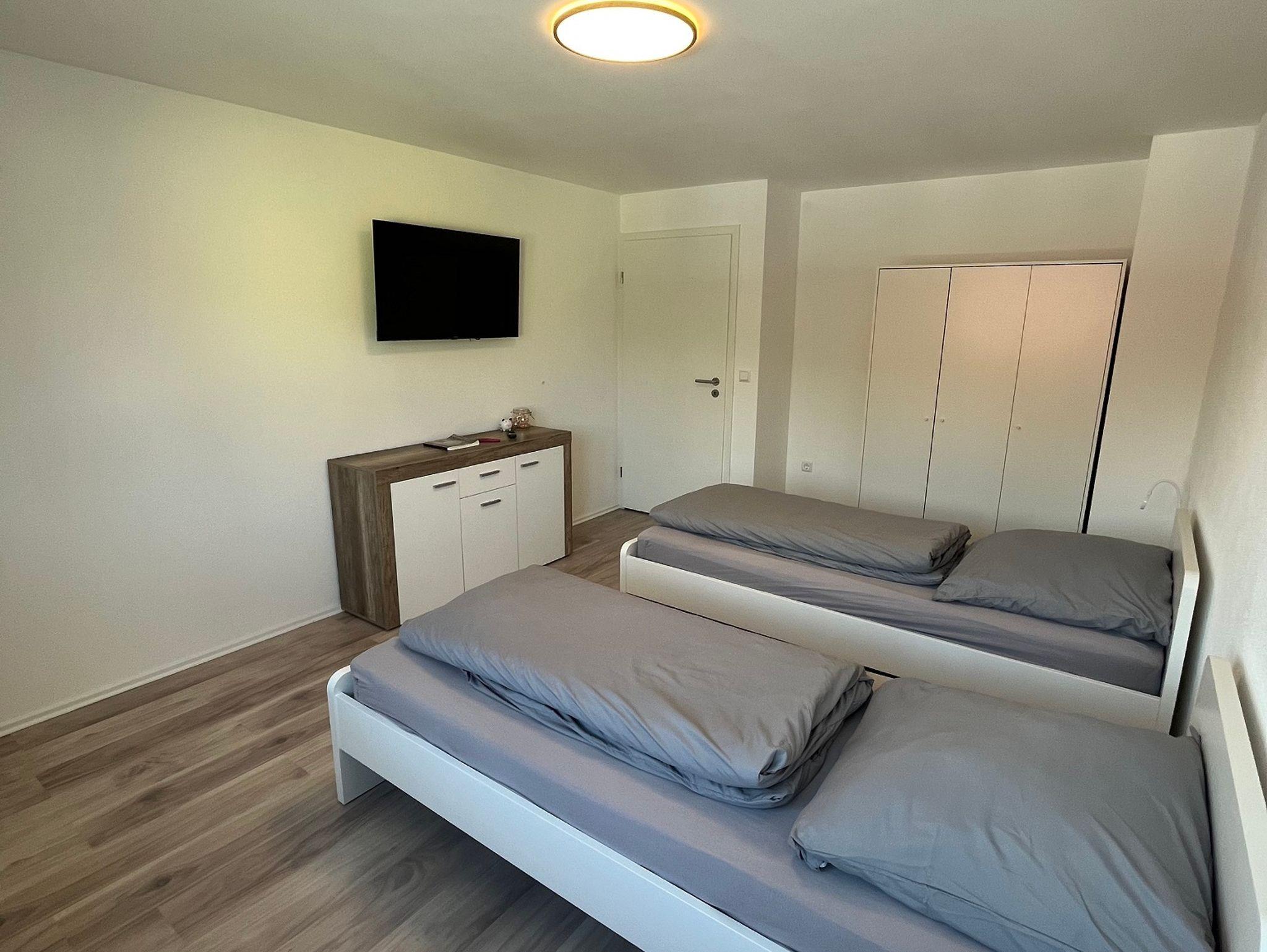 Die Ferienwohnung verfügt über 2 Schlafzimmer (in einem Zimmer steht Ihnen ein Sat TV Smartfernseher mit allen gängigen Streamingapps wie Netflix, YouTube zur Verfügung). Auf Wunsch kann ebenfalls ein Kinderbett zusätzlich zur Verfügung gestellt werden.