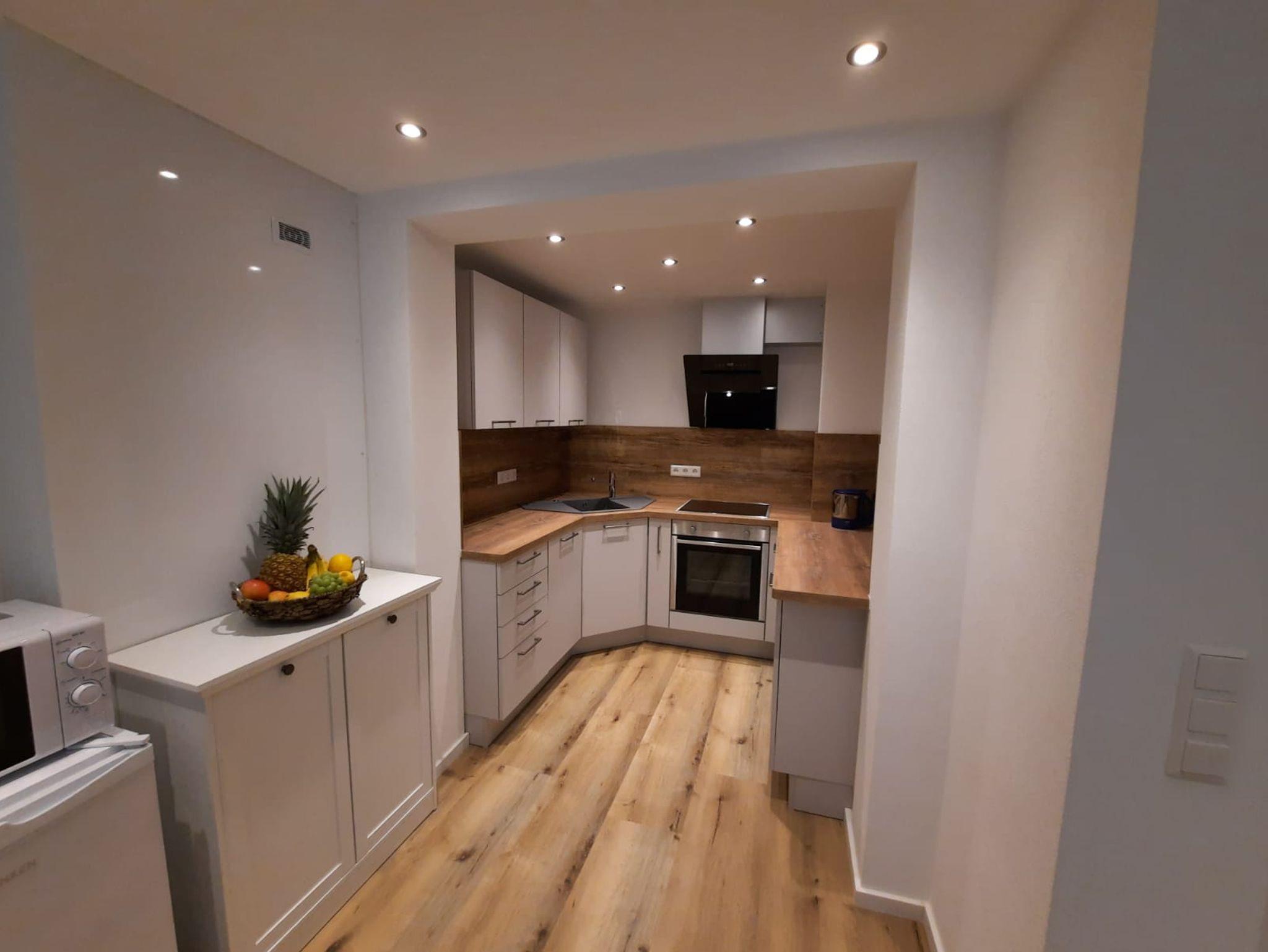 Unsere kernsanierte Ferienwohnung mit 70 m² Wohnfläche bietet Platz für 1-6 Personen. Das gemütliche Wohn-Esszimmer mit Zugang zum Balkon, Esstisch mit 6 Stühlen, Schlafsofa und Sat TV (Smartfernseher mit allen gängigen Streamingapps wie Netflix, YouTube...) lädt zum Verweilen ein. Die offene und komplett ausgestattete Küche mit Geschirrspüler, Kühlschrank inclusive kleinem Gefrierfach, Herd, Backofen, Mikrowelle, Wasserkocher, Kaffeepadmaschine, Toaster und Stabmixer lässt keine Wünsche offen. Die Ferienwohnung verfügt über 2 Schlafzimmer mit je 2 Einzelbetten (Betten zusammenschiebbar, in einem Schlafzimmer befindet sich ebenfalls ein Smart TV). Das geräumige Badezimmer mit modernem Doppelwaschbecken, großem Spiegel, großzügiger Dusche, Badewanne und sichtgeschütztem WC bietet Platz für die ganze Familie. Bitte beachten Sie, dass keine Haustiere erlaubt sind. Das WLAN und eine absperrbare Garage (nur nach vorheriger Anmeldung und Verfügbarkeit) vor dem Haus können Sie kostenfrei Nutzen.