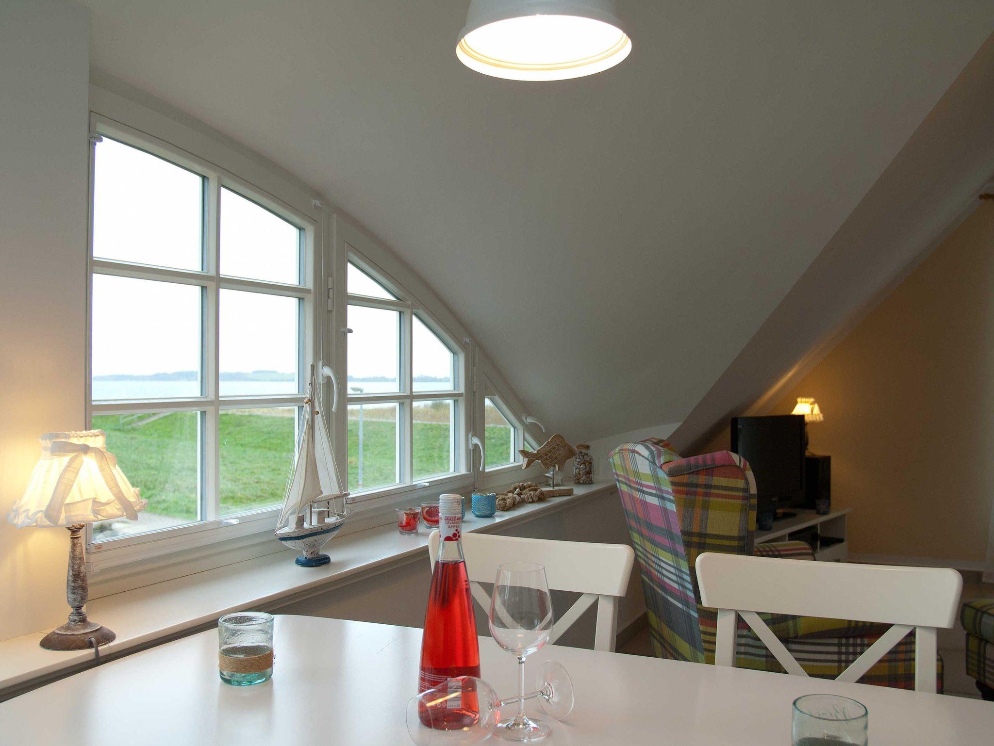 Die liebevoll eingerichtete Ferienwohnung Vilmblick (DG) mit ausgebautem Spitzboden, verfügt über einen großzügigen und maritim eingerichteten Wohnbereich mit einladenden Fledermausgauben für einen außergewöhnlichen Rundumblick für bis zu vier Personen.