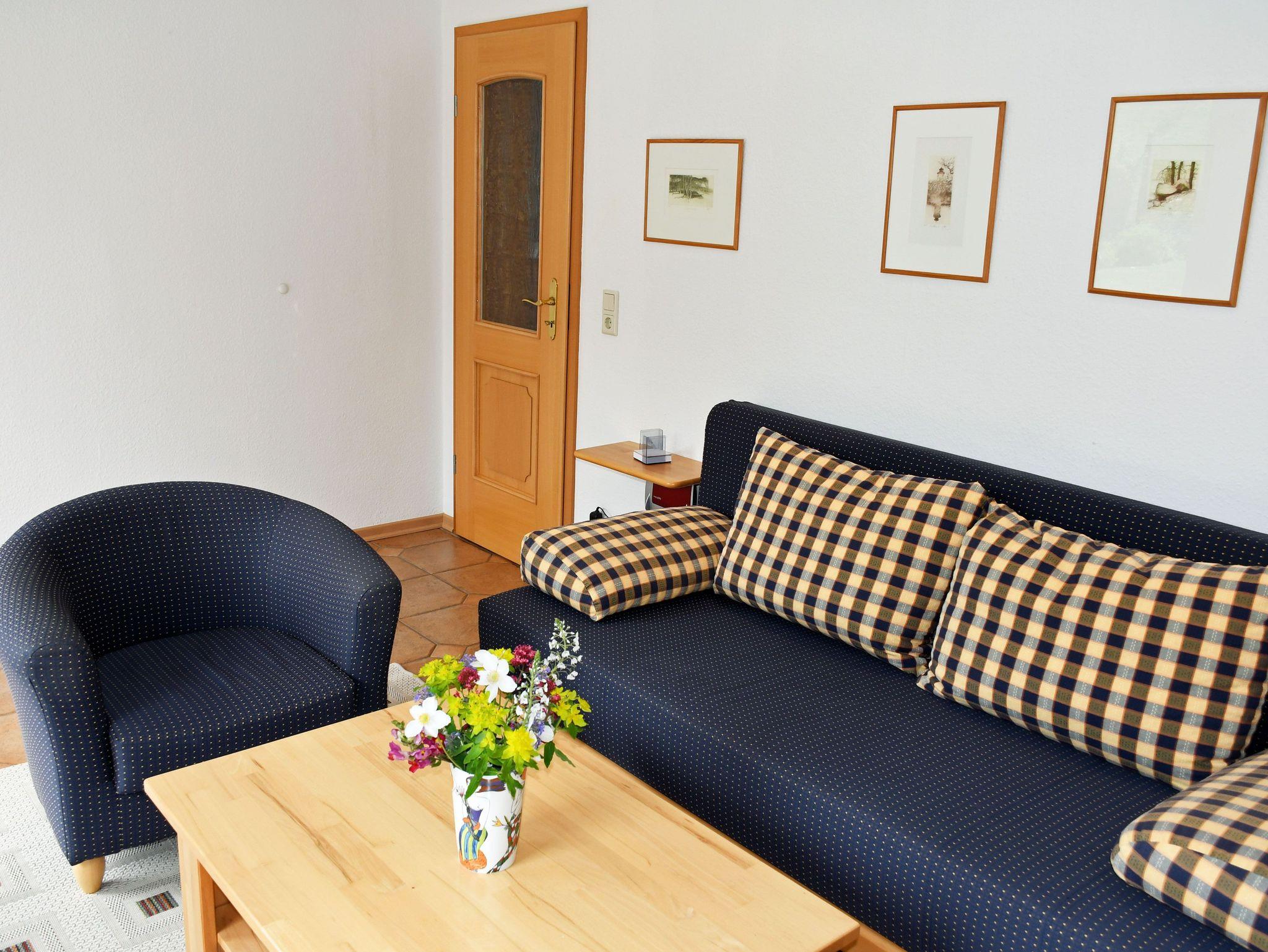 Es wurde sehr liebevoll, modern und komfortabel eingerichtet. Ein Geschirrspüler, ein Herd mit Cerankochfeld und Backofen sowie eine Waschmaschine und ein Haartrockner gehören zur Ausstattung. Über einen kleinen Flur mit Garderobe gelangt man in den Wohnraum mit Couch und Sessel, Tisch, Schrankwand und TV-Gerät. Durch die großen Fenster haben Sie hier einen sehr schönen Ausblick in den Naturgarten und die Zickerschen Alpen.