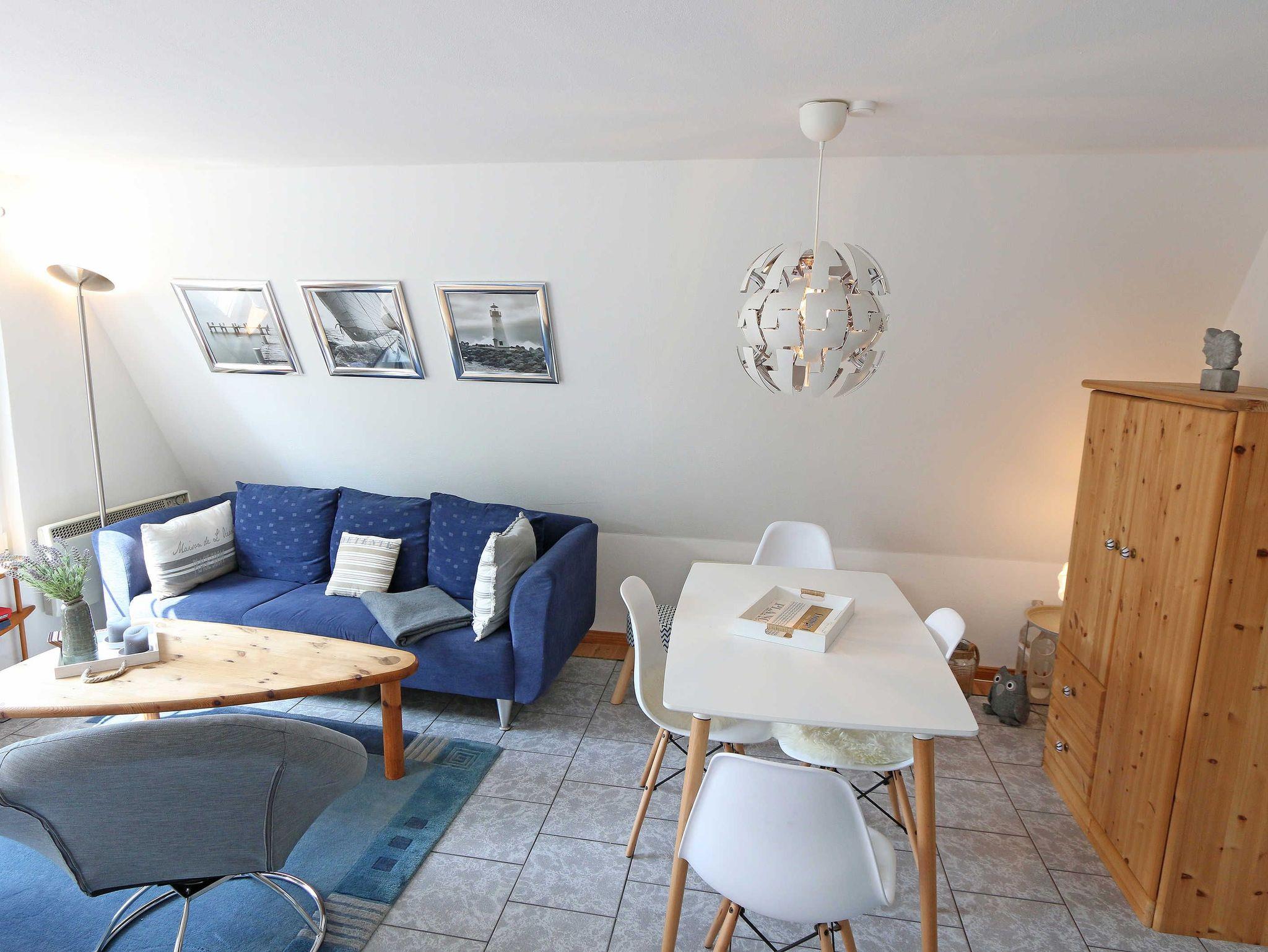 Das reetgedeckte Nichtraucherferienhaus umfasst ca. 50 qm Wohnfläche und erstreckt sich über 2 Etagen. Das Haus bietet Platz für 2 bis 4 Personen. Das Erdgeschoss teilt sich auf in einen offenen Wohnbereich mit einer Couch, Couchtisch und 2 Sesseln, einen Essbereich für 4 Personen. Die moderne Ausstattung wird durch einen Smart-TV mit Sky (Auswahl von Sport, Film, Dokumentation), mit Soundbar nebst Blu-Ray-Player, einer Mini-Kompaktanlage und für gemütliche Abende durch diverse Bücher und Gesellschaftsspiele abgerundet. Ein Internetanschluss (WLAN) ist für Sie zusätzlich inklusive. Angrenzend befindet sich die gut ausgestattete Küchenzeile mit einem 4-Zonen-Ceranfeld, Spülmaschine, Kühlschrank mit Gefrierfach, Mikrowelle, Kaffeemaschine, Wasserkocher, Toaster sowie viele weitere Küchenutensilien. Da in der gesamten Ferienhaussiedlung kein offenes Feuer gestattet ist, stellen wir Ihnen einen Elektrogrill zur Verfügung. Das Badezimmer, welches sich auch im Erdgeschoss befindet, ist mit einer offenen Dusche, einem Fön, einem Waschtisch und einem WC ausgestattet. Vom Wohnbereich gelangen Sie auf die nach Süden ausgerichtete und bestuhlte Terrasse mit Strandkorb und Sonnenschirm. Der dazugehörige Garten umfasst ca. 450 m². Die Terrasse ist zweistufig angelegt wo der untere Teil der Terrasse durch einen Heckenbewuchs nicht einsehbar ist und somit bis in die Abendstunden zum Verweilen einlädt. Durch eine steile Treppe, welche sich im Wohn-/Essbereich befindet, gelangen Sie in das Obergeschoss des Hauses. Hier befinden sich 2 separate Schlafzimmer, mit jeweils einem Doppelbett (1x 1,80m x 2,00m und 1x 1,60m x 2,00m). Für kleinere Kinder steht ein Bettschutzgitter als Fallschutz bereit. Die Räumlichkeiten verfügen über Highboards und Nachttischablagen. Die im Obergeschoss befindlichen Fenster sind mit Insektenschutzgitter und Innenrollos versehen. Auch das Küchen und Badfenster sind mit Insektenschutzgitter bestückt. Haustiere sind leider nicht erlaubt. Ein Wäscheständer sowie ein Fahrradständer stehen für Sie bereit. Ein PKW-Stellplatz befindet sich auf dem Areal der Anlage sowie ein Spielplatz. Für unsere kleinen Gäste stehen 1x Kinderreisebett (ohne Zusatzmatratze und ohne Bett Inlett) sowie 1x Hochstuhl inklusive zur Verfügung. Die Erstausstattung eines Wäschepaketes (komplette Bettwäsche, 1 Duschhandtuch, 1 kleines Handtuch) können Sie bis 14 Tage vor Anreise gegen einen Aufpreis dazu buchen oder durch eigene ergänzen. Ab 2 gebuchten Paketen erhalten Sie einmalig 1 Geschirrhandtuch und 1 Duschvorleger hinzu.