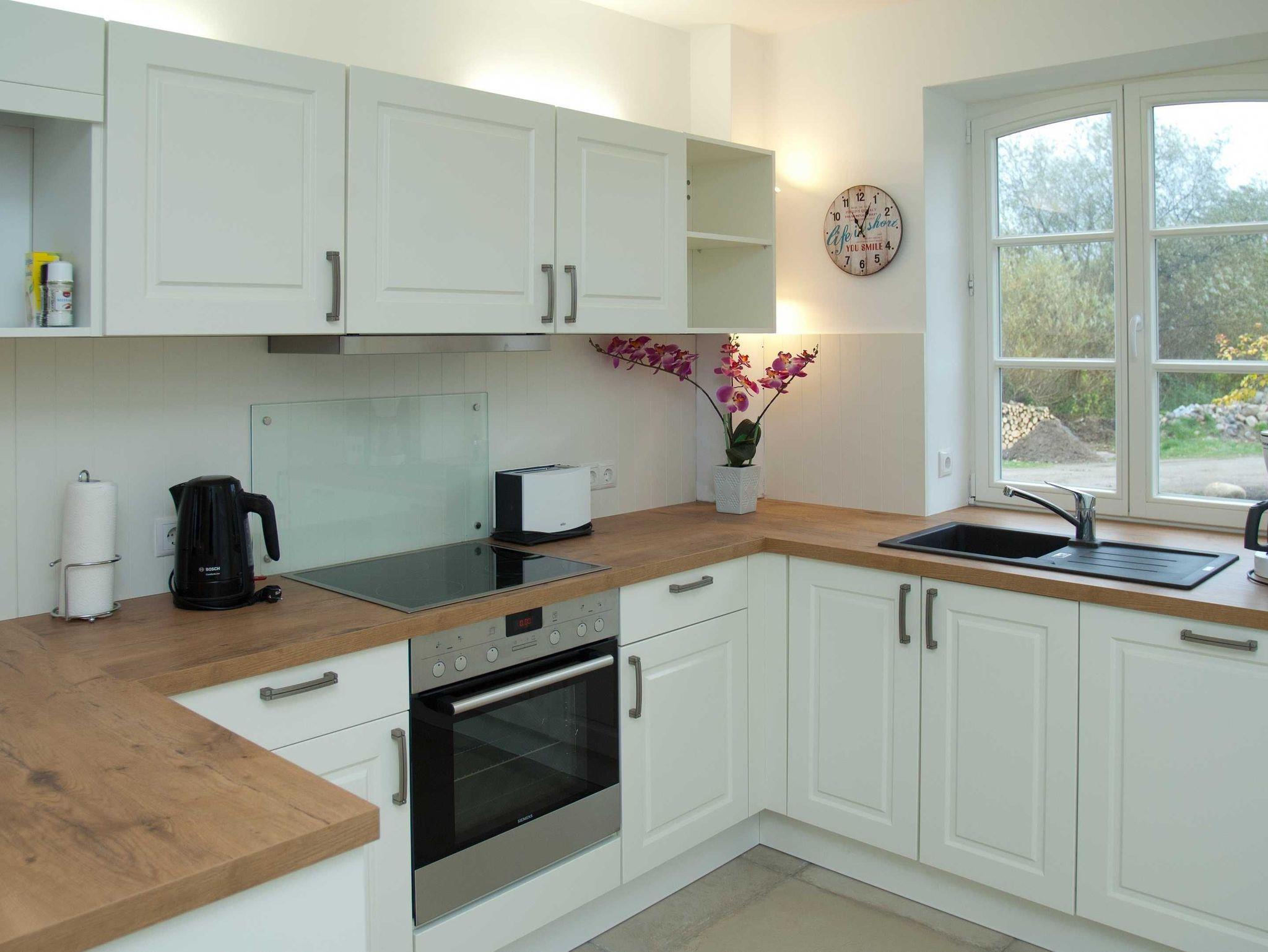 • Landhausküche mit schöner Sitzecke und Markengeräten