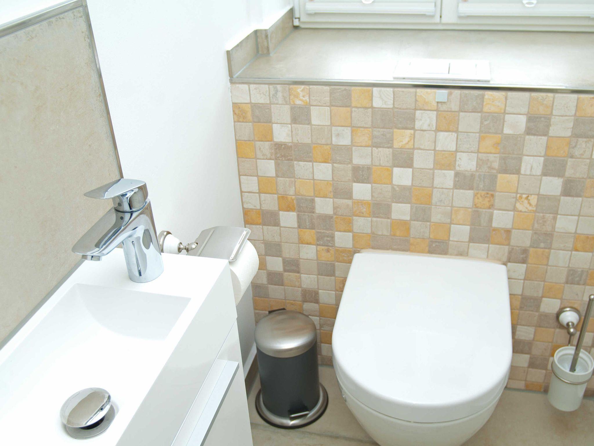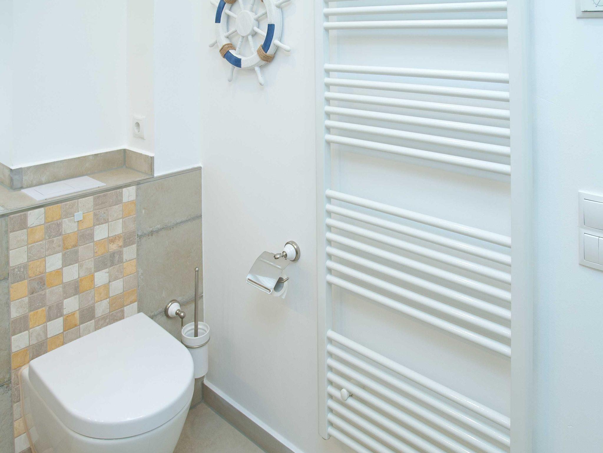 Der Badbereich mit Wellness-Regendusche bietet ausreichend Platz zum Relaxen.
