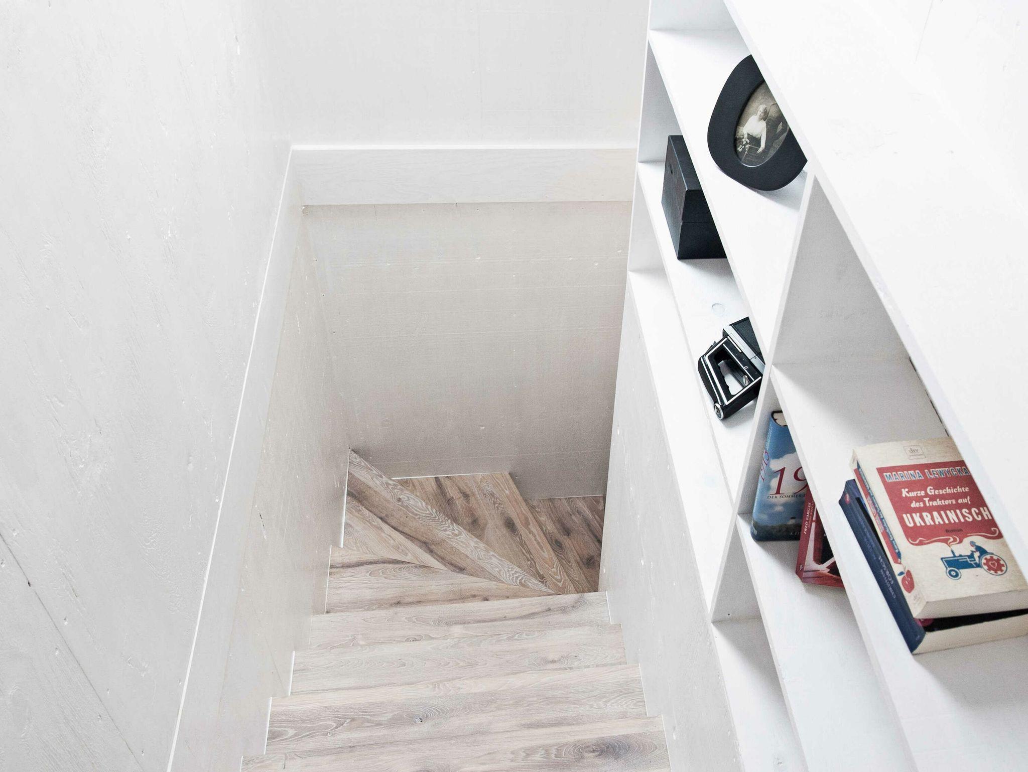 Die Reduktion auf natürliche Baustoffe und übersichtliche, funktionale Strukturen mit vielen Einbauten schaffen Klarheit und Raum. Die Wohnfläche beträgt mehr als 130 Quadratmeter, der großzügige Hauptraum, inklusive Küche und Essbereich ist von einer offenen Galerie geprägt. Die Deckenhöhe reicht hier bis auf fast acht Meter. Alle Zimmer erhalten Licht von zwei Seiten.
