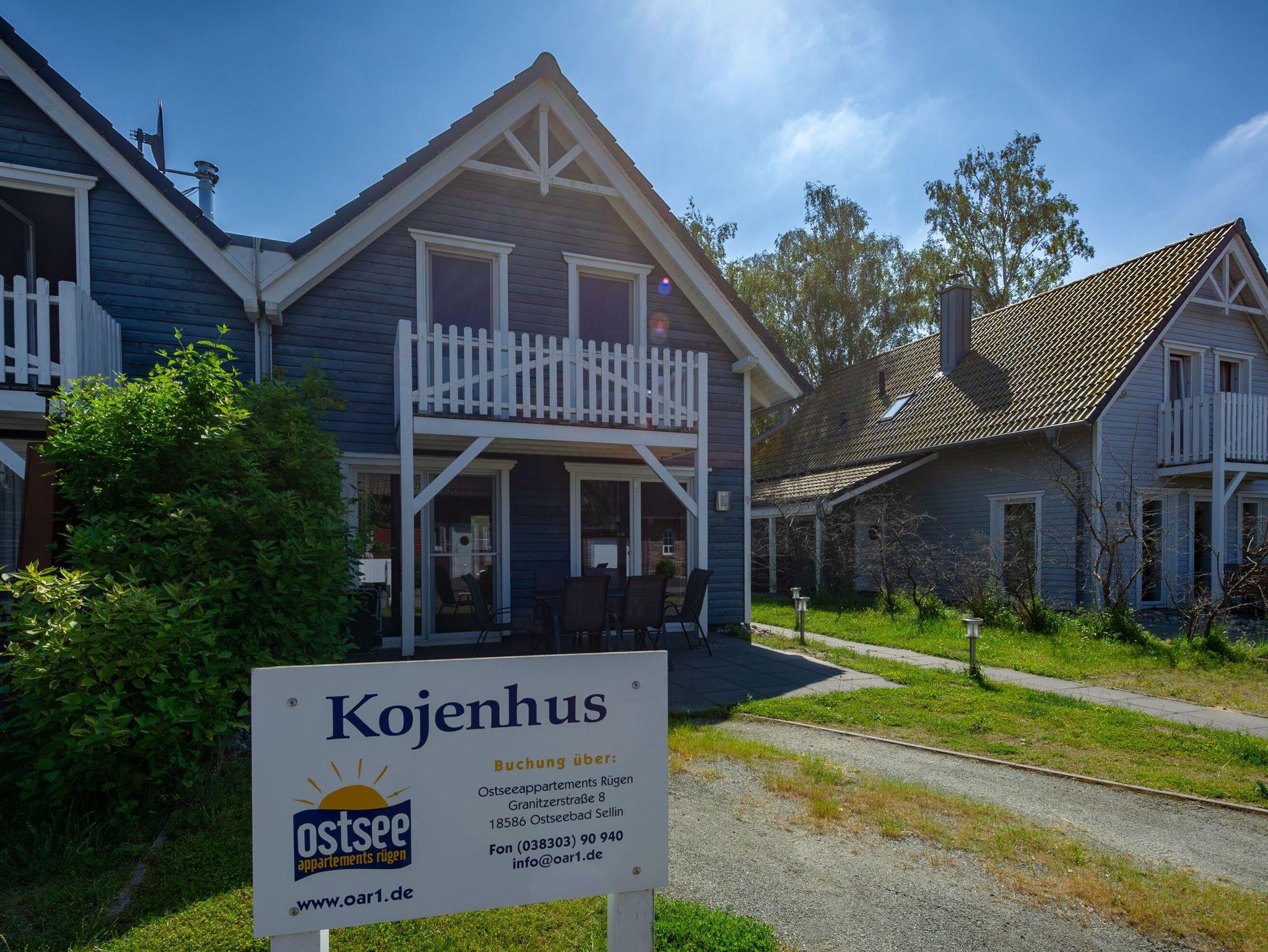 Das rechte Nichtraucher-Ferienhaus „Kojenhus“ hat ca. 130 m² Wohnfläche über zwei Ebenen verteilt mit 4 Schlafzimmern und einem ganz besonderen Wohnambiente. Es verfügt über eine möblierte Terrasse und einen kleinen Balkon zur Nord-West-Seite mit einem schönen Blick auf das Boddengewässer der Hagenschen Wieck und den Hafen von Gager. Die Balkon- bzw. Terrassenmöbel stehen saisonal - in der Regel von Mai bis Ende September - zur Verfügung.