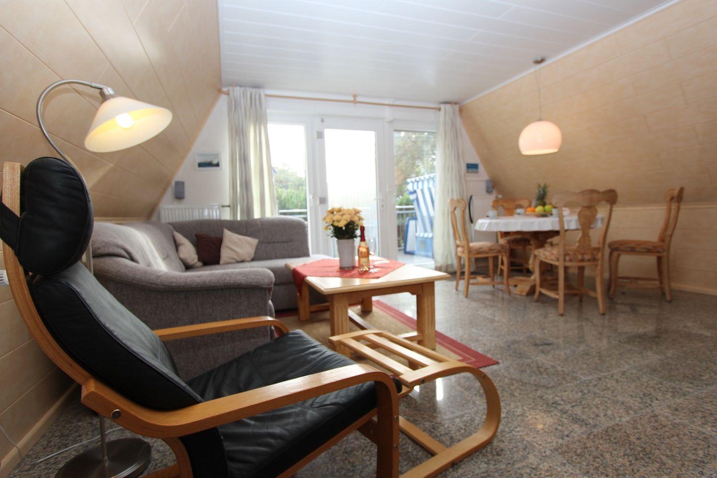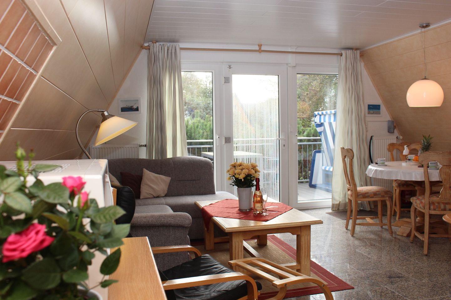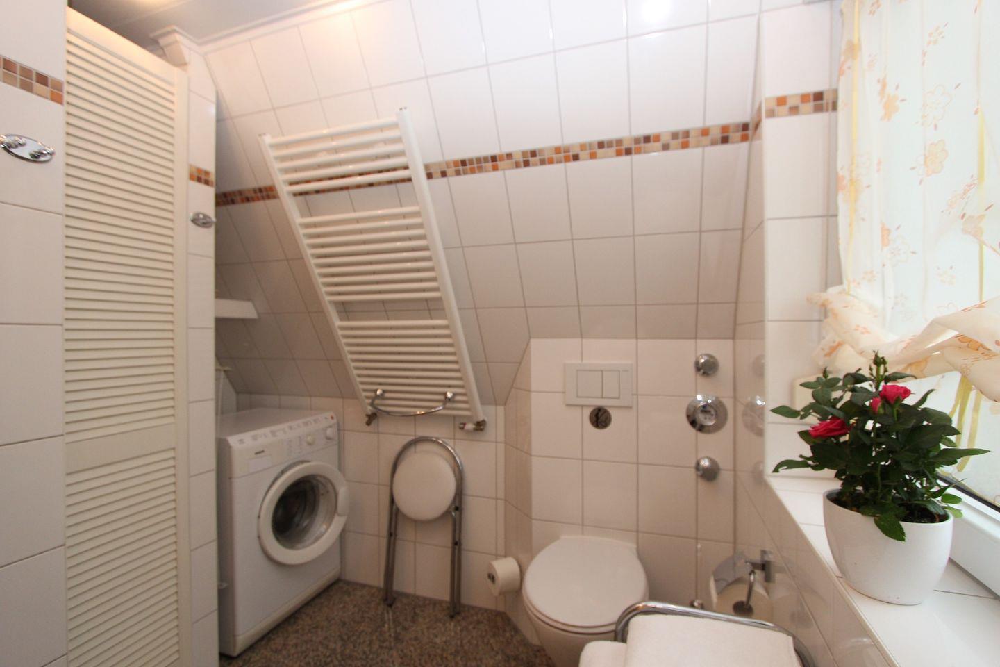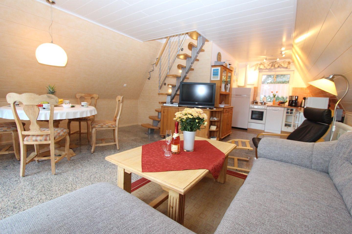 Im Erdgeschoss verfügt sie über einen Wohn-Essbereich mit offener Küche und ein Duschbad mit Waschmaschine. Die Küche verfügt über einen Herd mit Cerankochfeld und Backofen, einen Kühlschrank mit Gefrierfach sowie Geschirrspüler, Mikrowelle, Wasserkocher, Kaffeemaschine, Toaster und diverse Küchenutensilien. Zur Unterhaltung nutzen Sie einen Flachbild-TV und einen Blu-ray Player mit CD/Radio-Funktion.