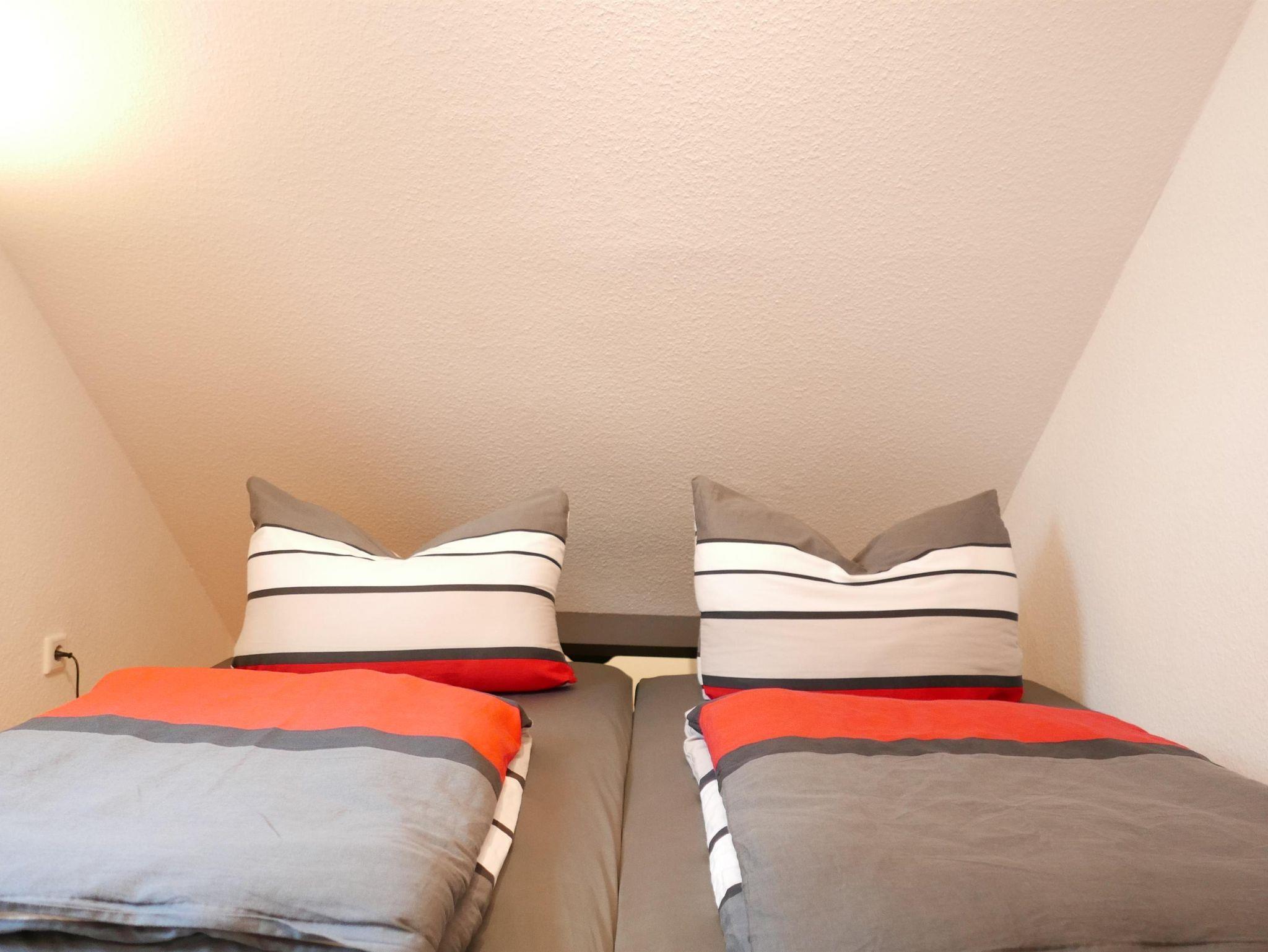 • Ein großes Schlafzimmer mit Doppelbett, ein kleines Schlafzimmer mit zwei Einzelbetten.
