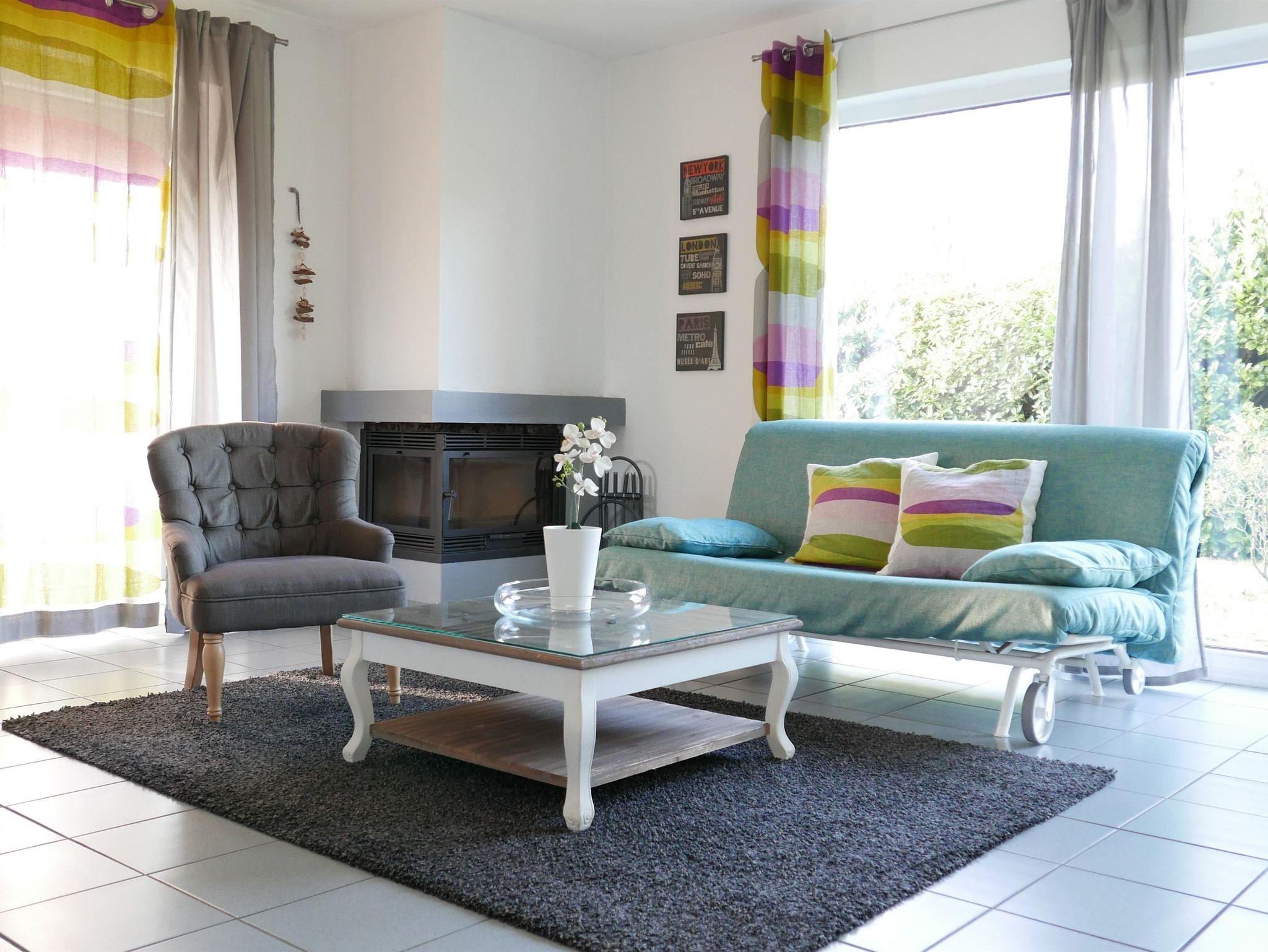 • Wohnbereich mit Fernseher, Schlafsofa und Esstisch