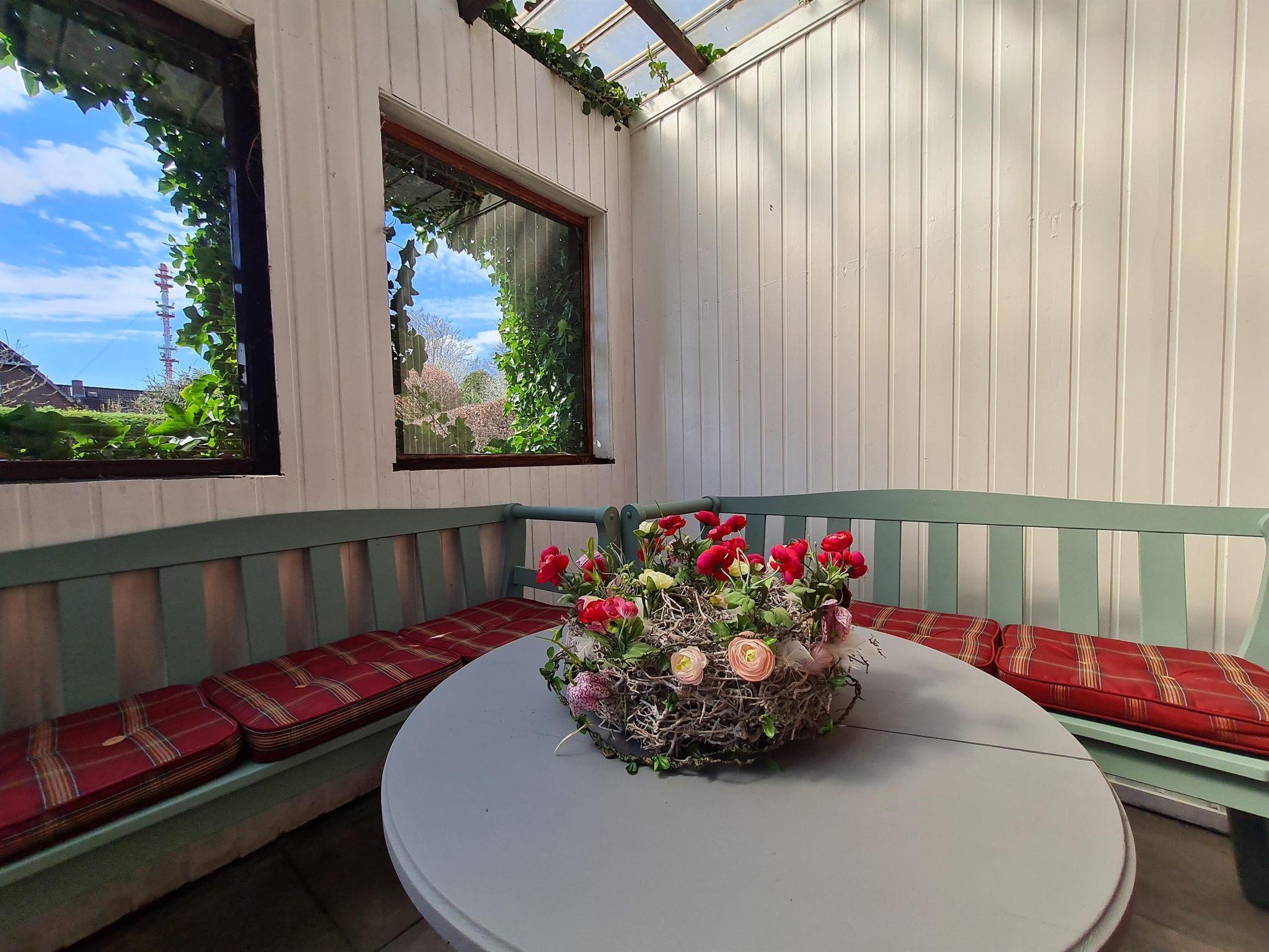 Die Loggia schützt vor frischem Nordseewind, lädt zum Frühstücken und zu gemütlichen Lesestunden ein.