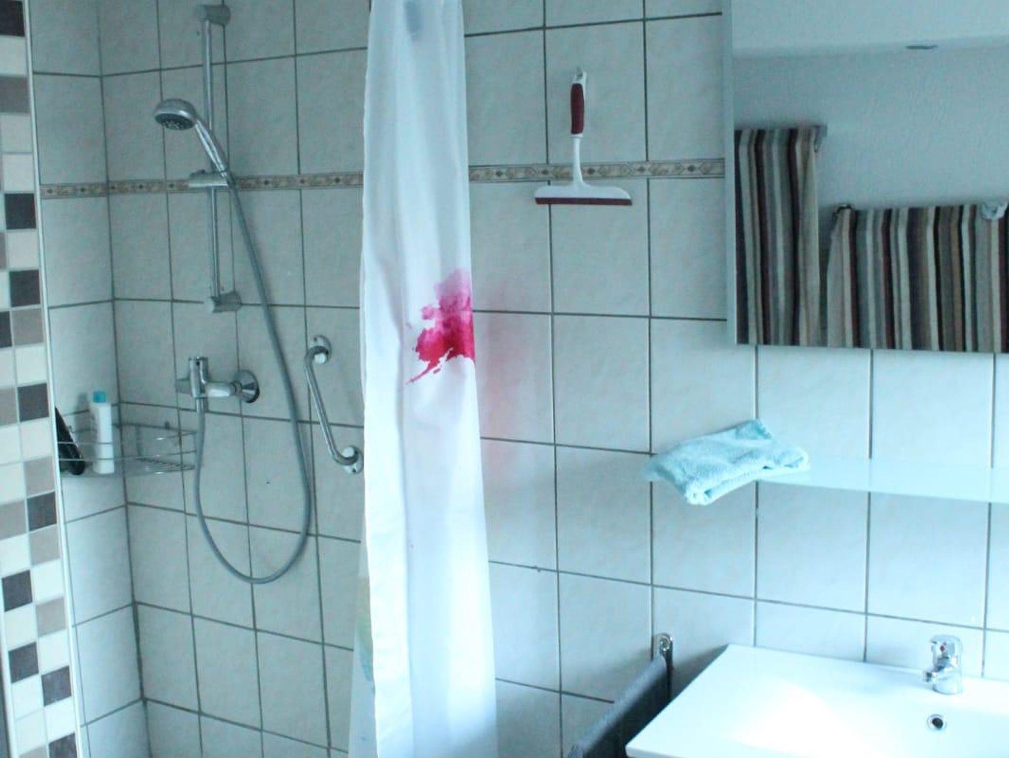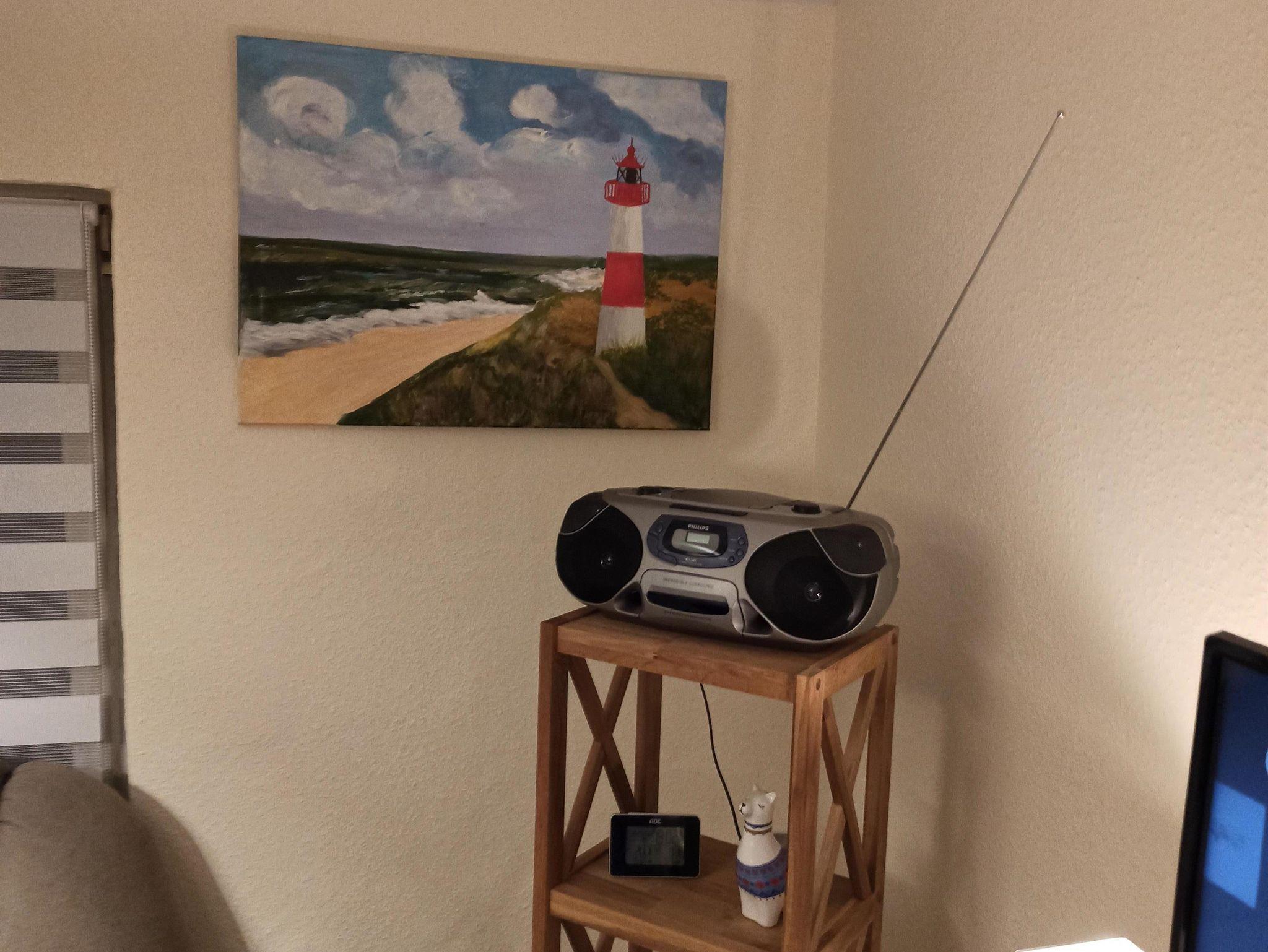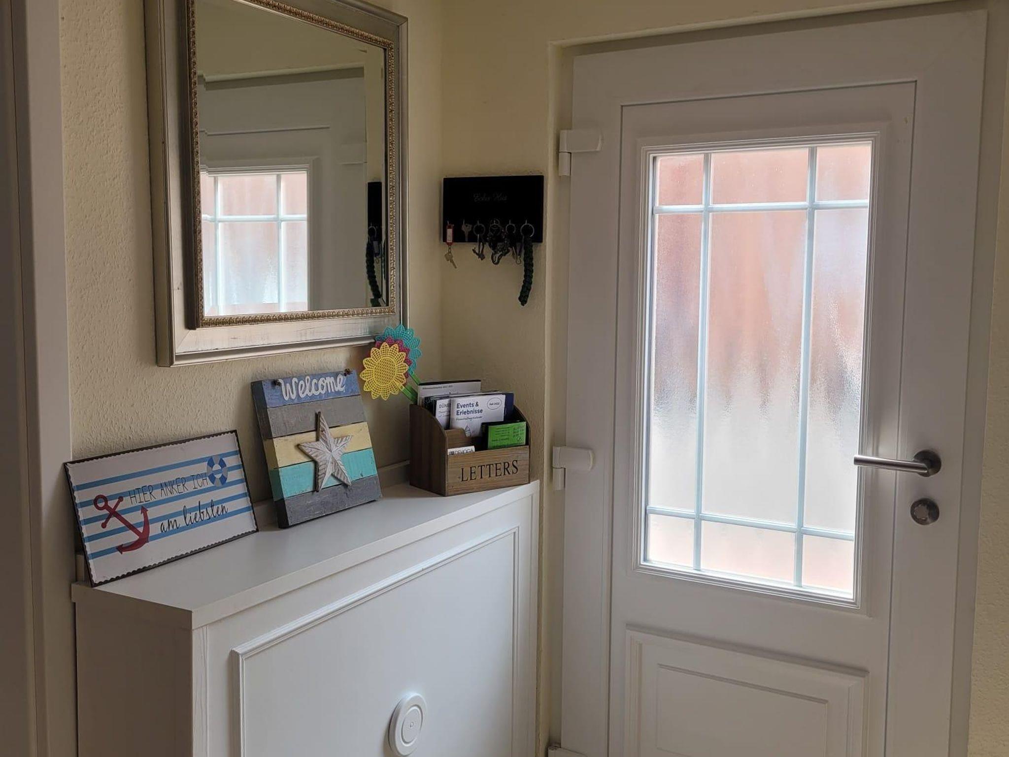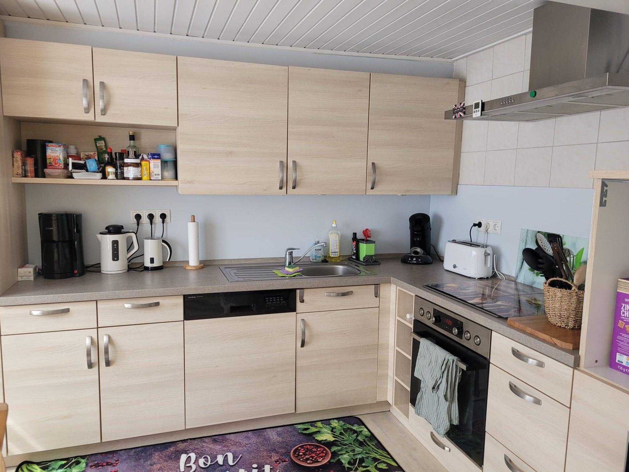 Im Erdgeschoss gibt es ein großes Bad mit ebenerdiger Dusche (ca. 1 x 1m), WC und Waschmaschine, eine Küche mit Geschirrspüler, Cerankochfeld, Backofen, Mikrowelle, Toaster, Kaffemaschine und Senseo, Kühl- Gerfrierschrank und einem Wasserkocher, ein Esszimmer mit Kaminofen, sowie ein Wohnzimmer mit gemütlicher Couch und Smart TV.