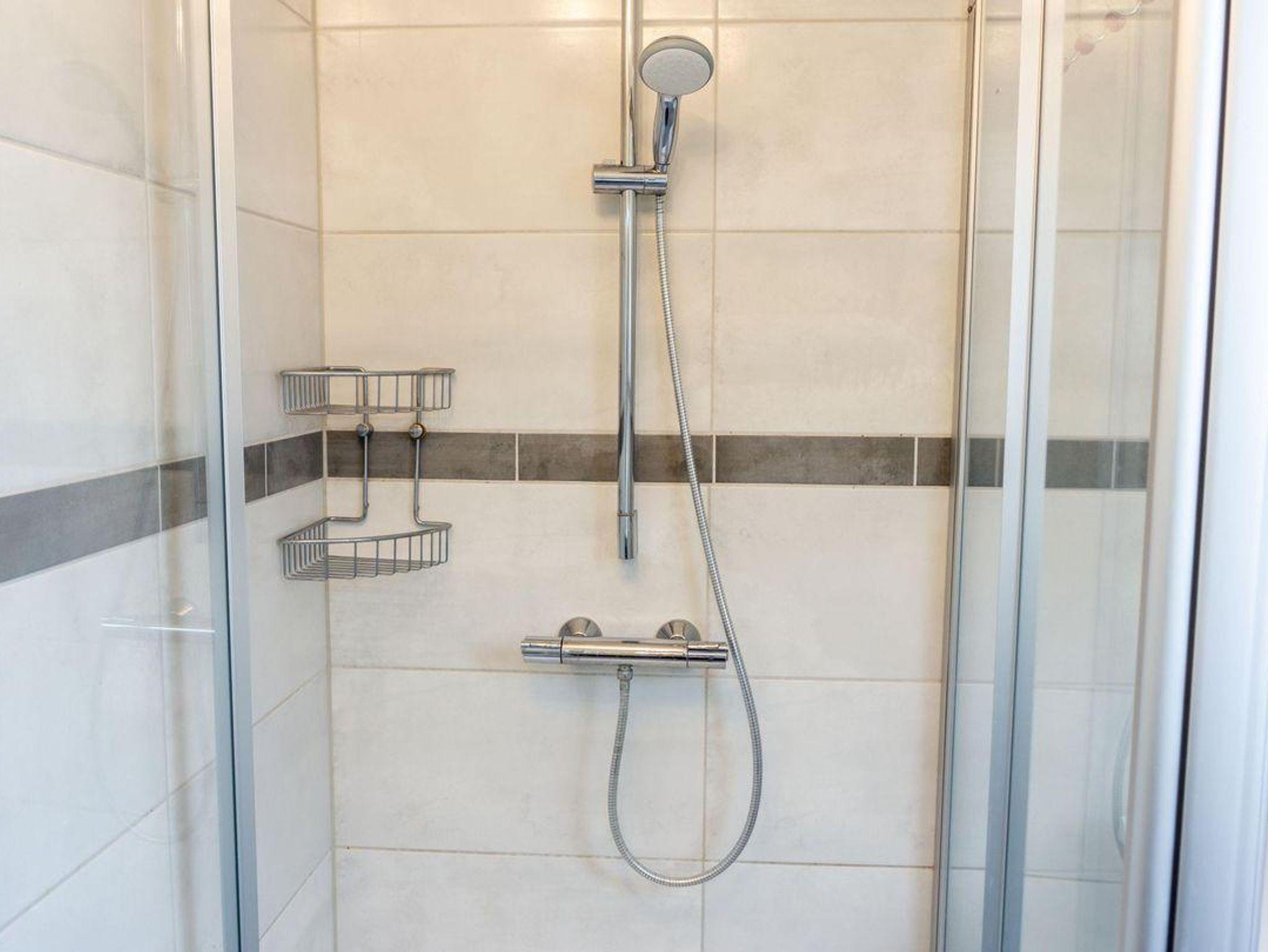 Die Küche ist geschlossen und mit einem Esstisch sowie einer umfassenden Ausstattung versehen. Hier stehen Ihnen Ceranherd, Backofen, Kühlschrank mit Gefrierfach, Mikrowelle, Spülmaschine, Kaffeemaschine und viele weitere Küchengeräte wie Mixer, Wasserkocher, Eierkocher und Toaster zur Verfügung. Sämtliche Küchenutensilien, Geschirr, Besteck sowie Geschirrhandtücher sind in der Erstausstattung enthalten.