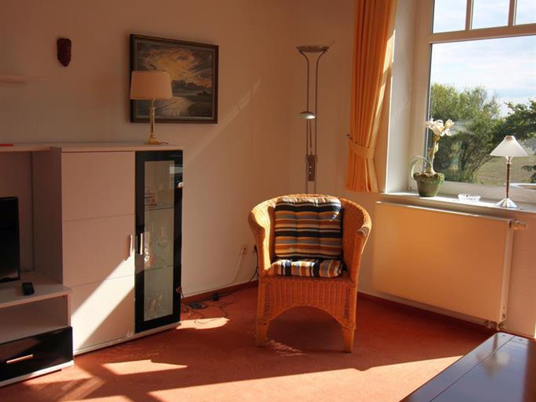 Großzügig neu eingerichtete Ferienwohnung (60 qm )in der 1. Etage mit separatem Eingang. Der Wohnraum ist gemütlicher Sitzecke und SAT-TV ausgestattet sowie dem Zugang zum Balkon. Im Schlafraum befindet sich ein Doppelbett und reichlich Schrankraum. In der komplett ausgestatteten Küche mit Mikrowelle und Essecke können leckere Urlaubsgerichte zubereitet werden. Duschbad mit WC