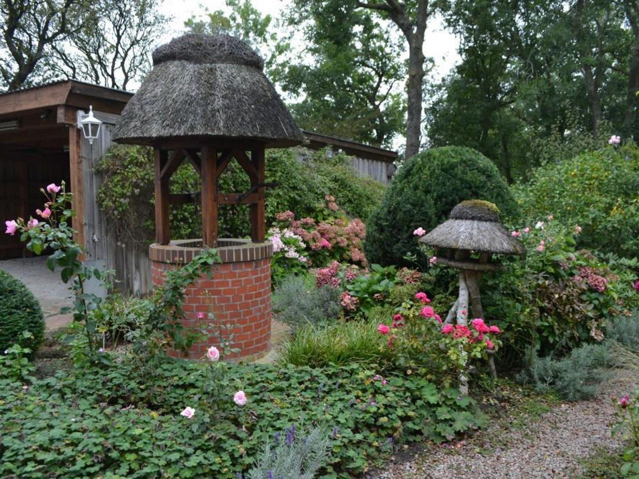 Das Haus ist umgeben von einem liebevoll mit Rosen, Obstbäumen und Ziersträuchern angelegtem Garten, in dem romantische Wege zu den verschiedenen Sitzplätzen und Terrassen führen. Für kühlere Abende steht Ihnen ein Pavillon zur Verfügung.