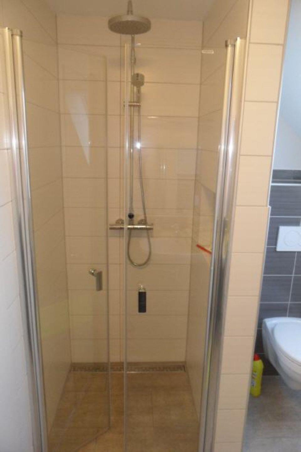 Duschbad mit ebenerdiger Dusche (Regendusche und Handbrause), Handtuchtrockner