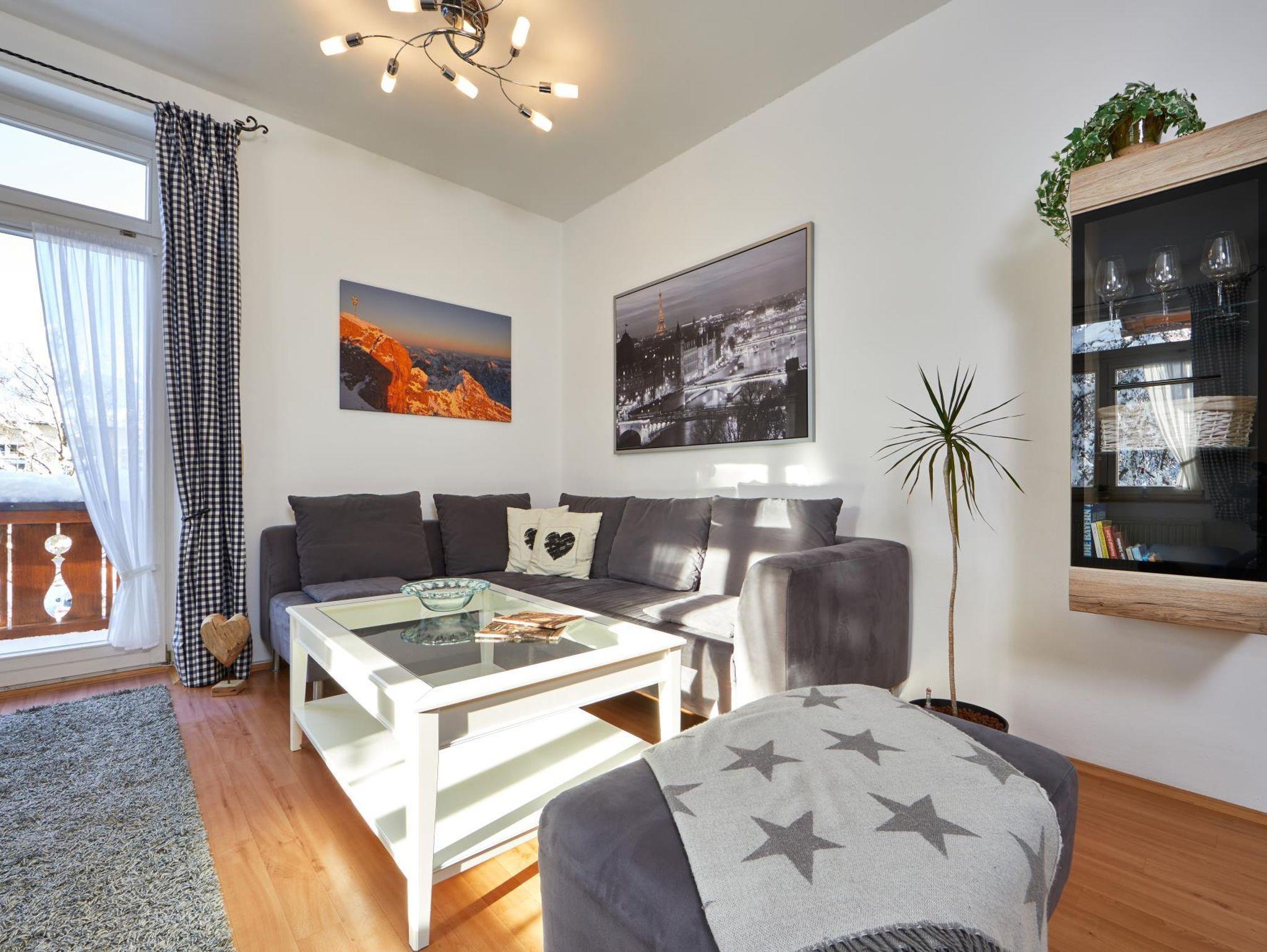 Das Apartments hat eine Größe von ca. 110 m², ein großes Wohnzimmer mit Sitzecke und großer Wohnlandschaft, komplett ausgestattete Küche, drei Schlafzimmer, ein neues Bad, ein separates WC sowie einen Süd/West Balkon mit Bergblick.
