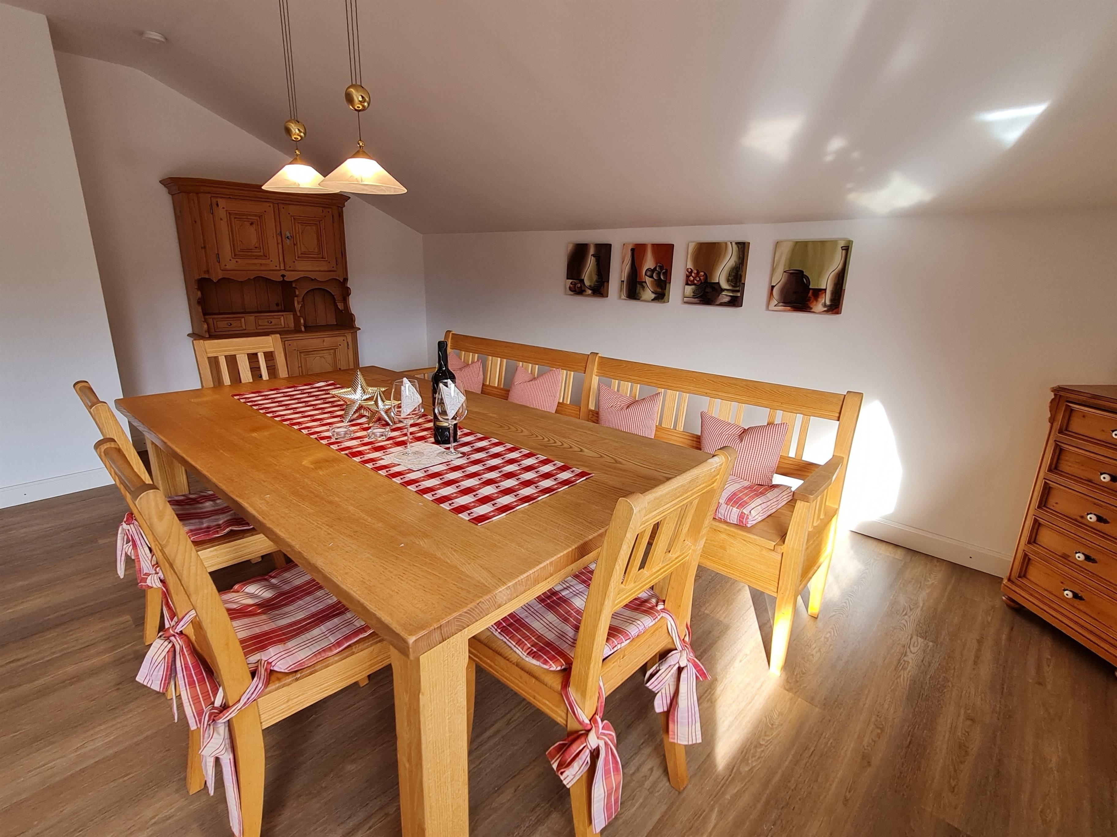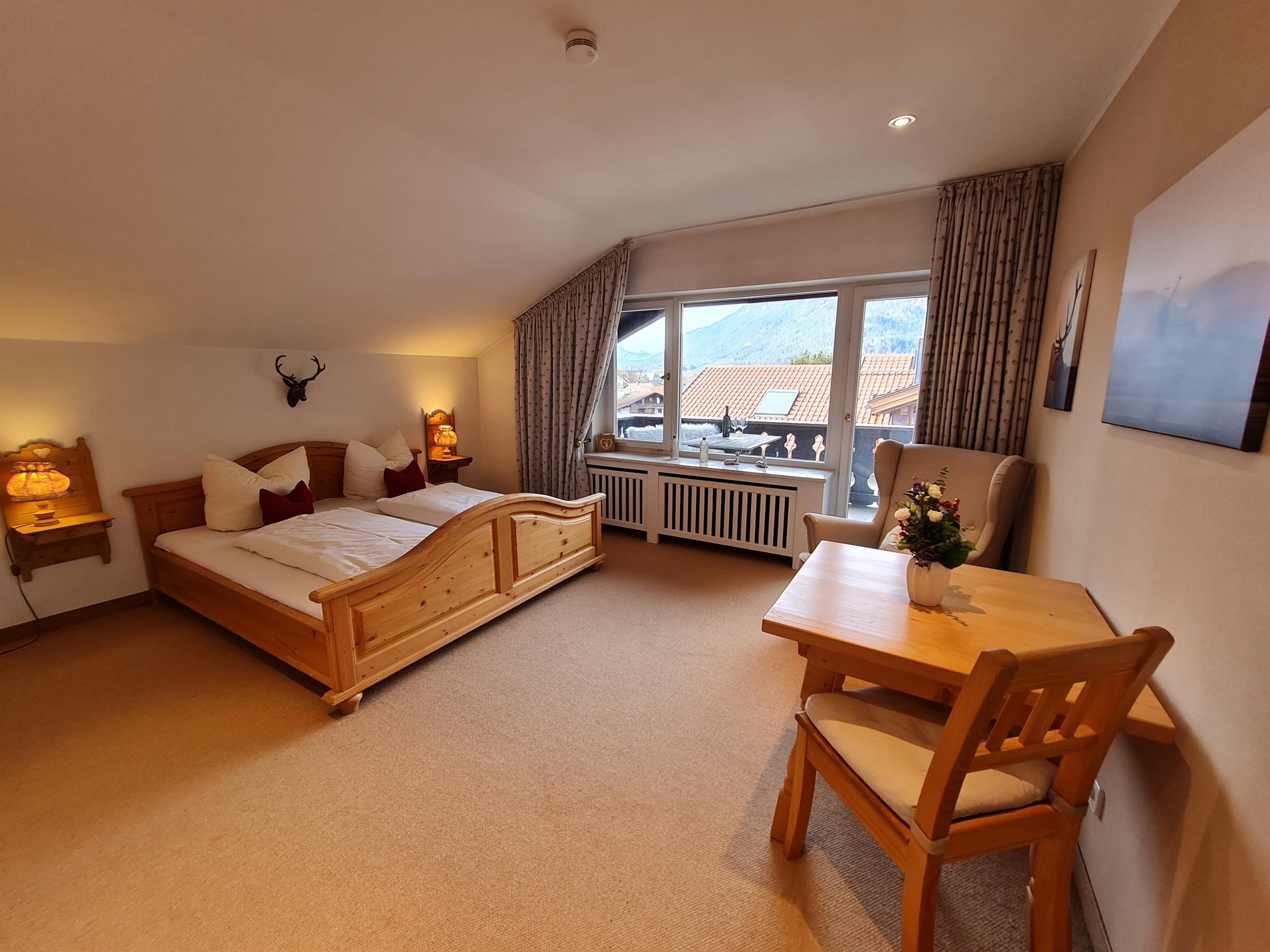 Die äußerst geräumige Ferienwohnung Wettersteinblick bietet perfekte Voraussetzungen, gemeinsame Stunden mit Familie und Freunden zu verbringen. Durch ihre Größe sind aber auch private Rückzugsmöglichkeiten garantiert. In dieser großen Ferienwohnung wird es selbst mit 8 Personen nie eng, sie verfügt über vier Schlafzimmer (drei Doppelbetten und ein Stockbett), eine gutausgestatte großzügige Küche (inklusive Ofen und Spülmaschine, Kaffeemaschine und Eierkocher) mit gemütlicher großer Eckbank
