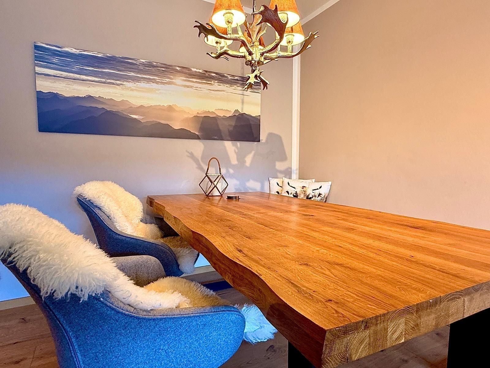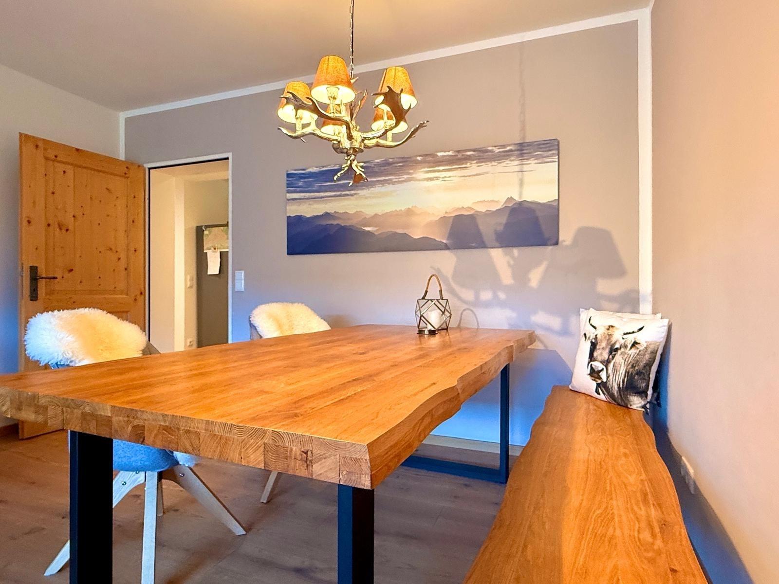 Die Möbelierung der Wohnung ist im alpenländischen Stil gehalten.