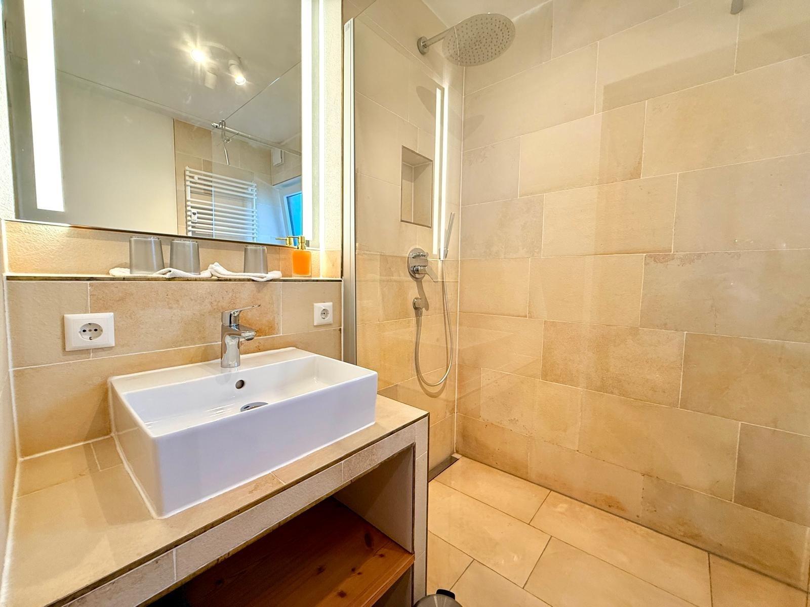 Auch in dieser Wohnung gibt es eine Walk-in-Dusche und auch hier ist das WC in einem extra Raum.