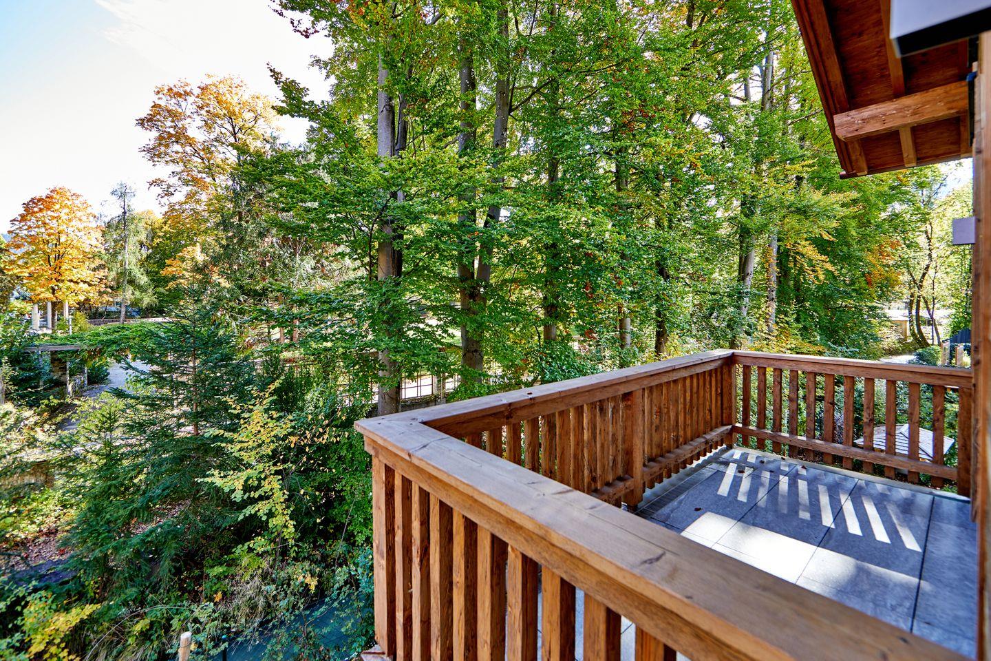 Durch die bodentiefen Fenster erwartet Sie ein fantastischer Blick hinaus in den idyllischen Kurpark. Und ein geräumiger Balkon lädt zum Entspannen an der frischen Luft ein.