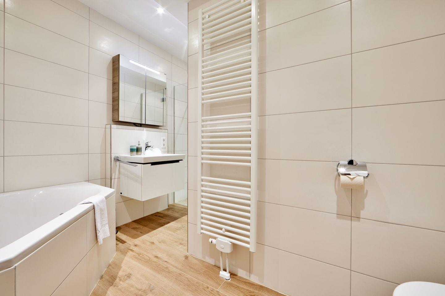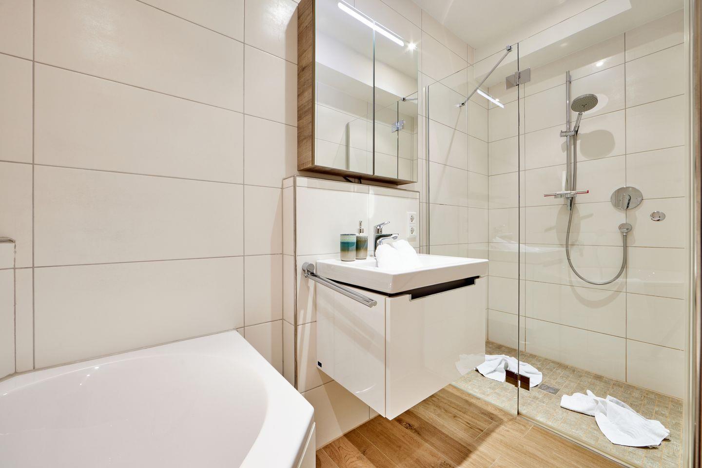 Zwei Schlafzimmer mit bequemen Betten und Verstaumöglichkeiten für Ihre Kleidung, sowie das moderne Badezimmer mit Eckbadewanne und separater Dusche bieten Raum für bis zu 3 Personen. Ein Handtuchtrockner so wie ein Föhn sind natürlich vorhanden.