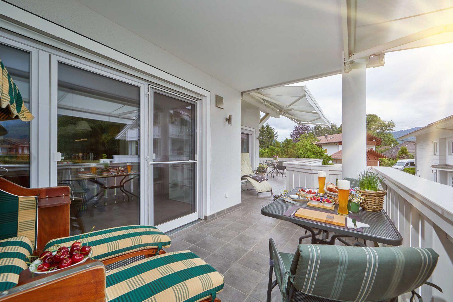 Das wahre Prachtstück des Alpenchalets Lotti ist aber der traumhafte, umlaufende Balkon, von dem Sie einen sensationellen Blick in die Alpenwelt genießen. Dieser Balkon ist jeweils vom Wohnraum und von beiden Schlafzimmern zugänglich. Hier finden Sie zwei Balkongarnituren mit Tischen und Stühlen, entsprechende Auflagen sowie bequeme Sonnenliegen. Drei Markisen bieten Ihnen an heißen Tagen ein schattiges Plätzchen und ein Strandkorb bringt etwas norddeutschen Charme in die Berge und bietet Ihnen einen perfekten Platz, um das umliegende ,Bergkino" zu genießen.