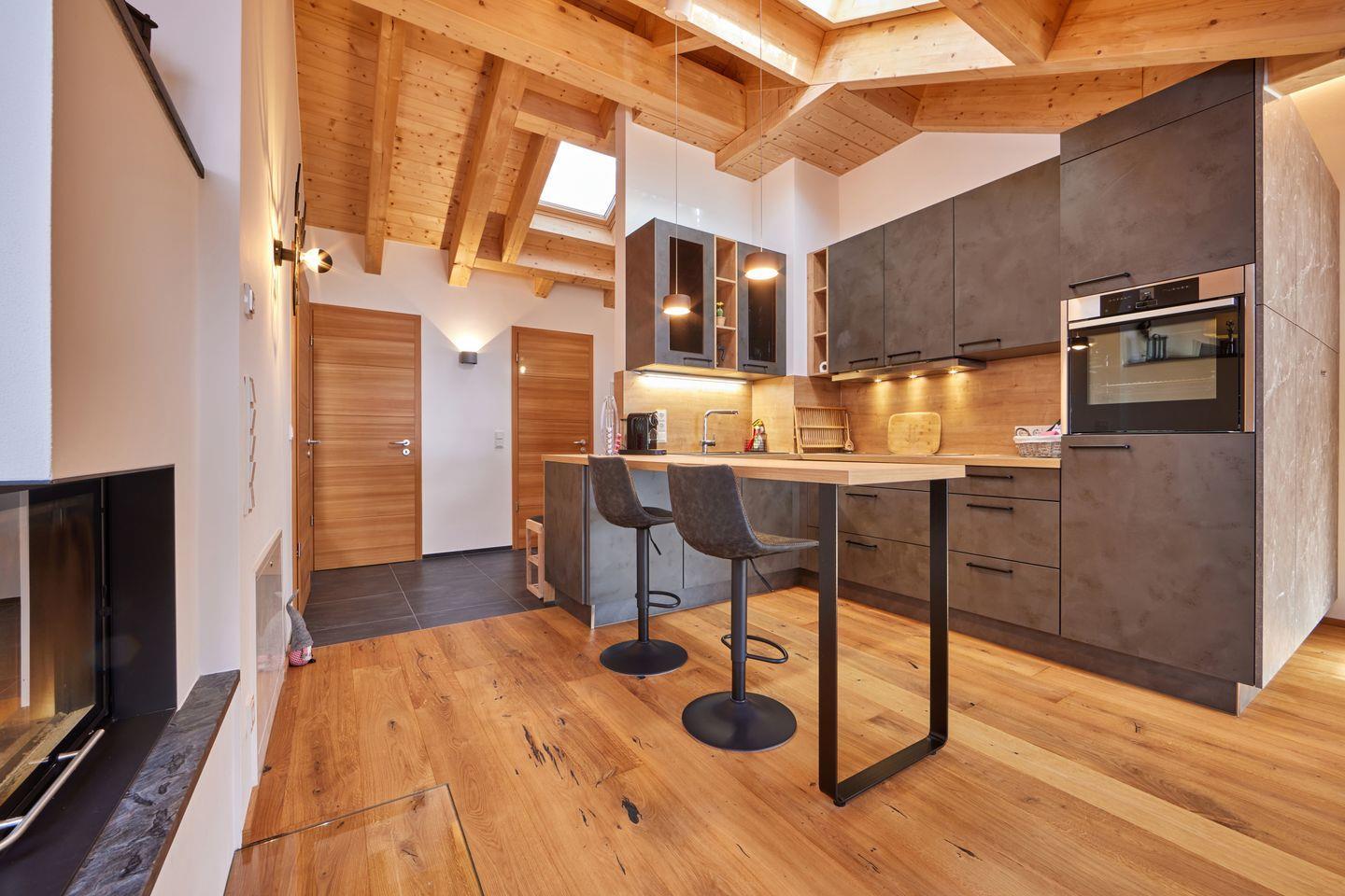 Genießen Sie Ihren Aufenthalt in diesem besonderen Apartment für Familien oder bis zu 4 Personen. Die hochwertige Einrichtung im modernen Design, gepaart mit ausgewählten antiken Möbelstücken, versprüht eleganten und alpinen Charme. Die geschickt platzierten Dachfenster lassen nicht nur viel Tageslicht in die Wohnung, sie ermöglichen auch großartige Ausblicke und holen die umliegende Bergwelt direkt in das Wohnzimmer.