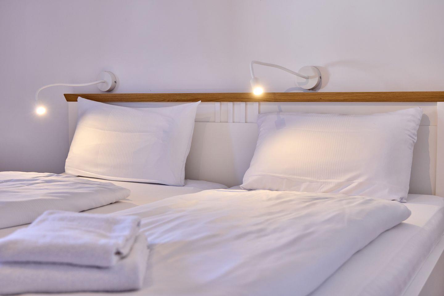 Das Schlafzimmer ist mit einem Doppelbett ausgestattet, wobei Sie auch im Wohnzimmer ein vollwertiges Schlafsofa vorfinden. Wir empfehlen jedoch, das Schlafsofa entweder nur mit einer weiteren erwachsenen Person oder zwei Kindern zu nutzen, da die Wohnung und der Schlafkomfort für insgesamt vier erwachsene Personen nicht optimal geeignet ist.
