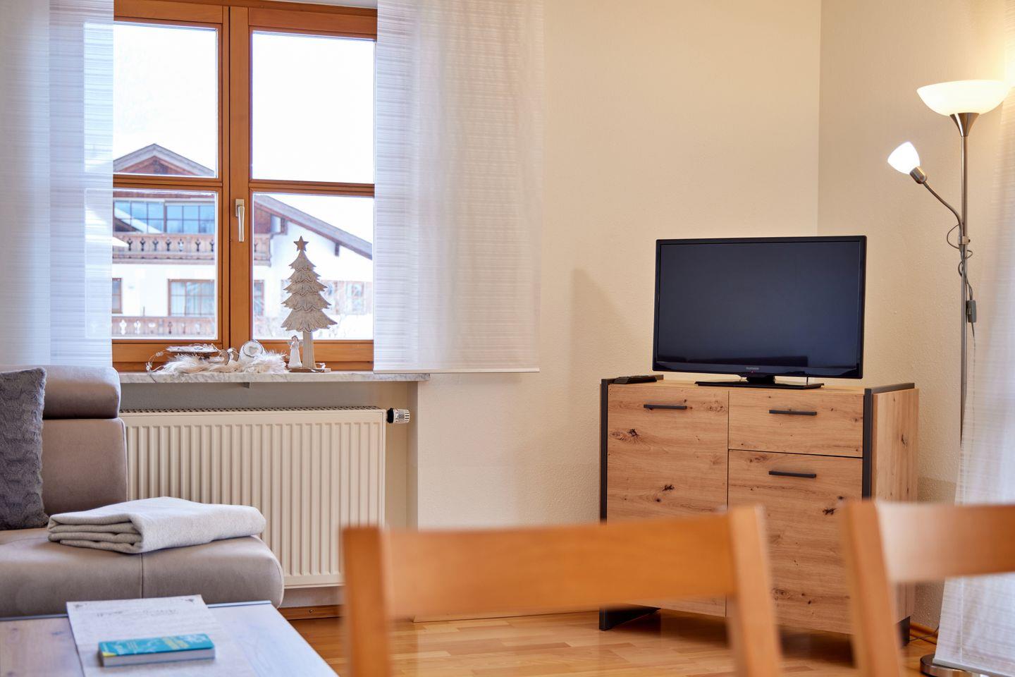 Nach einem erlebnisreichen Tag in den Bergen können Sie sich in der BergLiebe entspannen. Entweder auf dem Balkon, von dem aus Sie den Bergblick bewundern können, oder in der komfortablen Wohnzimmer-Ecke, wo Sie gemütlich entspannen und die Eindrücke des Tages Revue passieren lassen können.
