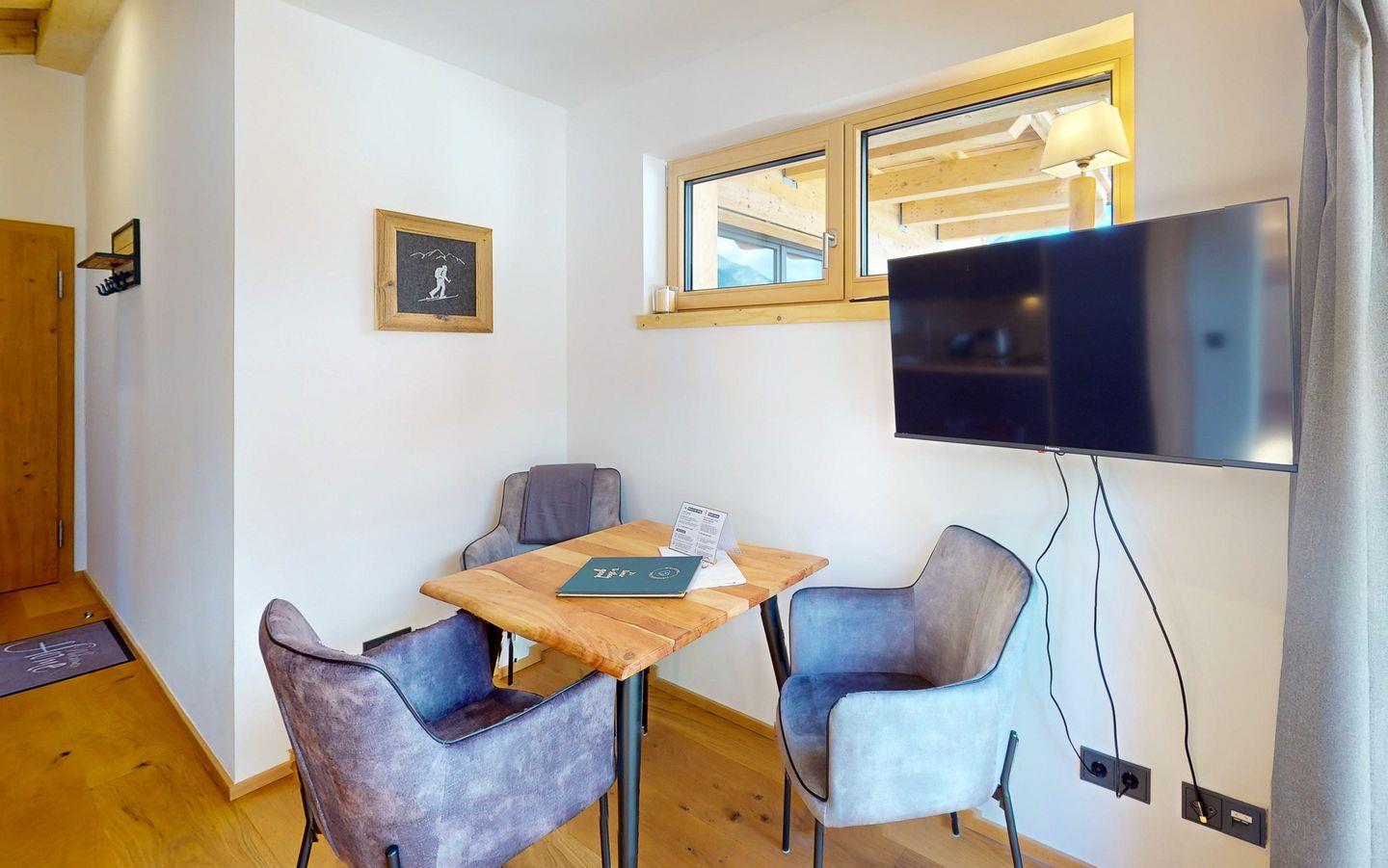 Vom Wohnbereich aus haben Sie außerdem Zugang zum nördlich ausgerichteten Balkon, von dem aus Sie den Blick in die Berge oder einen erholsamen Moment an der frischen Luft genießen können.