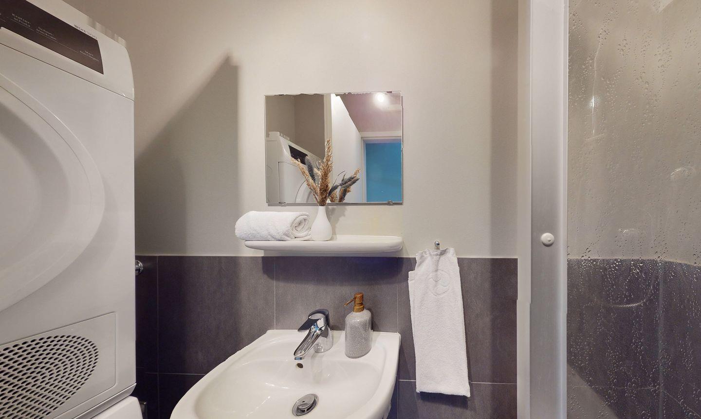 Ein großes Bad mit Dusche und Badewanne sorgt nach anstrengenden Ausflügen für Entspannung. Ein weiteres, kleines Duschbad und ein separates Gäste-WC stellen sicher, dass Sie sich auch bei größeren Reisegruppen nicht um das Badezimmer streiten müssen.