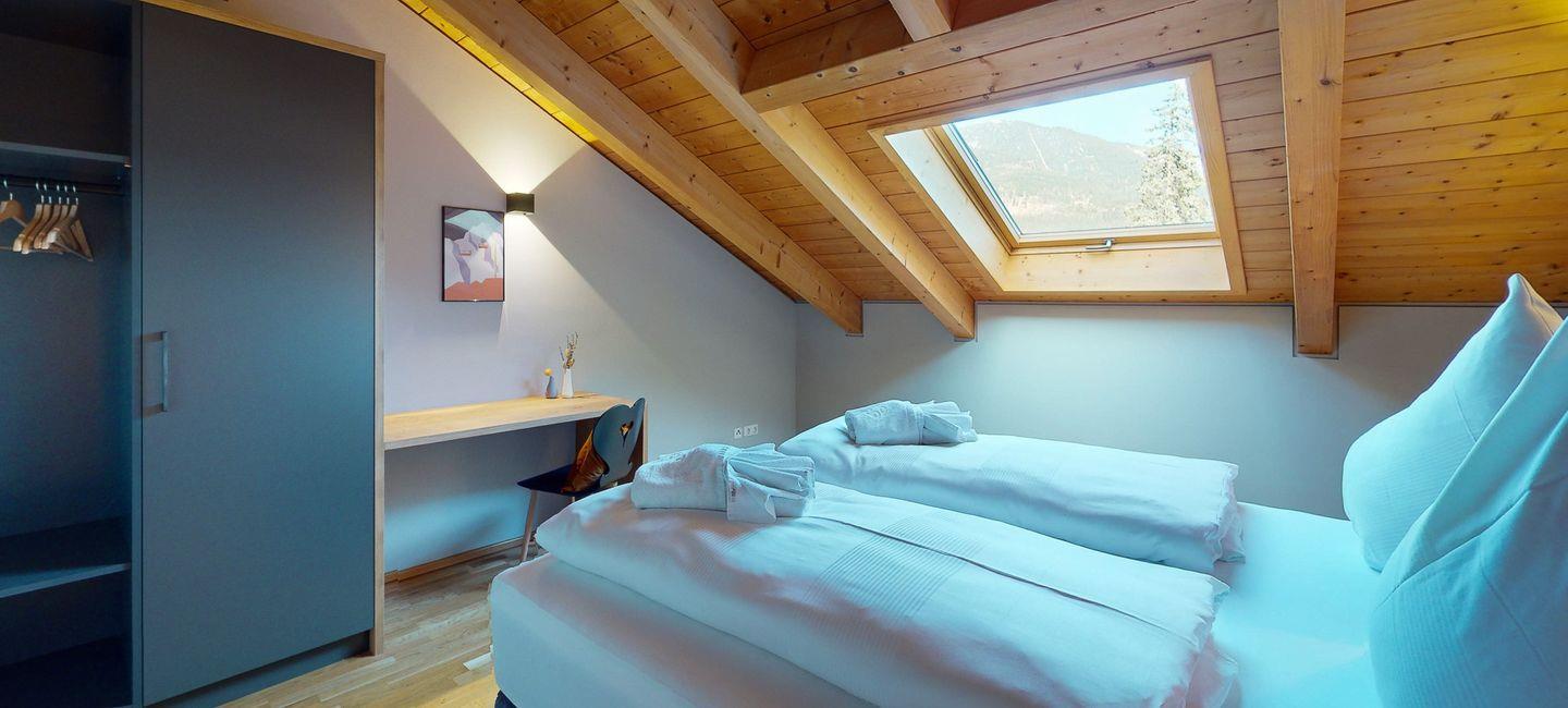 Mit insgesamt vier großzügigen Zimmern bietet die Wohnung ausreichend Platz für alle Ihre Bedürfnisse. Reichlich Fenster durchfluten die Räume mit Tageslicht und lassen über die Dächer der Stadt weit in die Berge blicken. Dazu viel natürliches Holz, gepaart mit elegantem, modernem Design ergeben eine edle Einrichtung und eine komfortable Unterkunft, in der man sich einfach wohlfühlen muss.