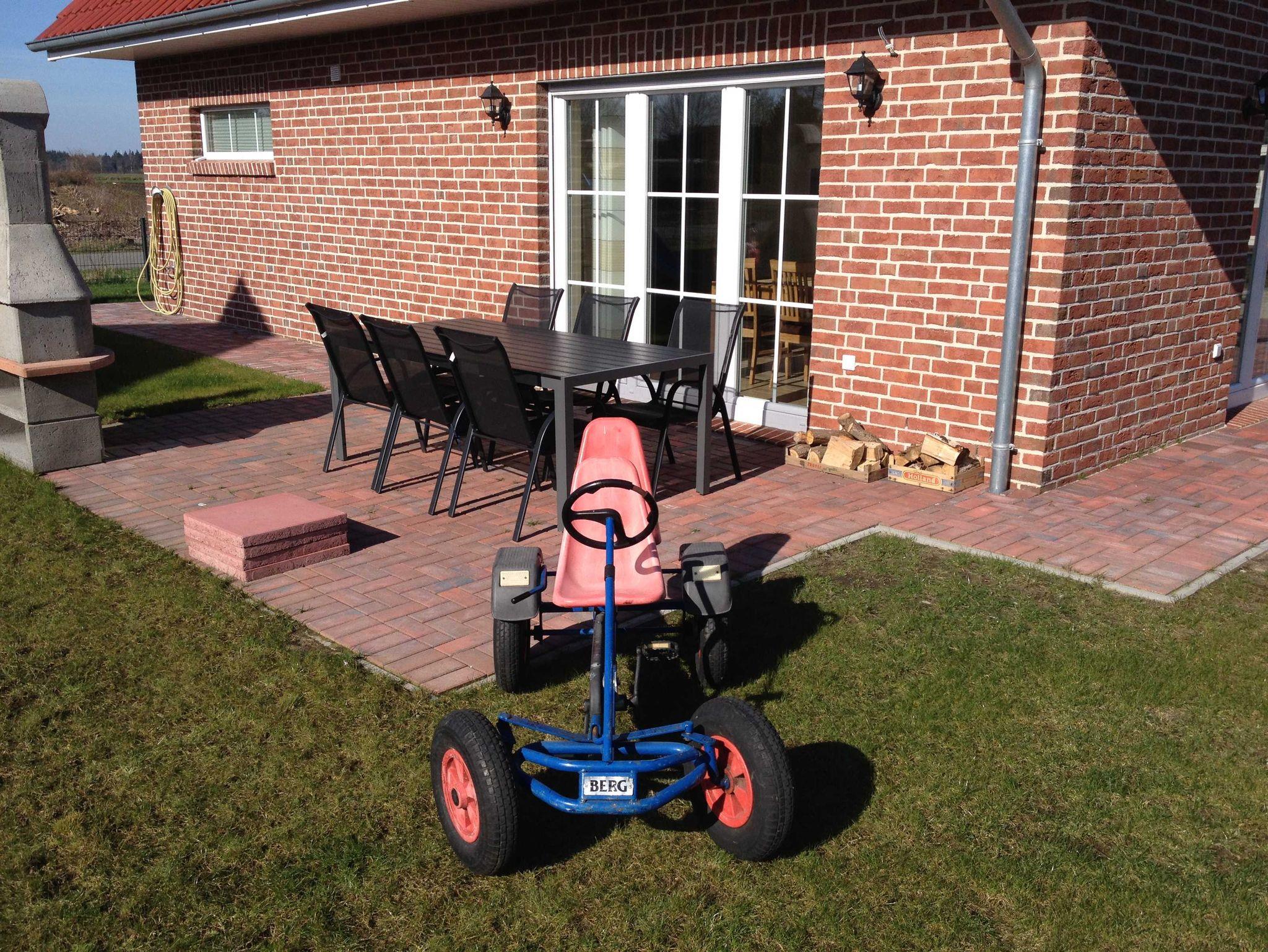 Im Garten befindet sich ein Grill sowie Kinderspielgeräte (Rutsche, Schaukeln und Kinderkettcar).