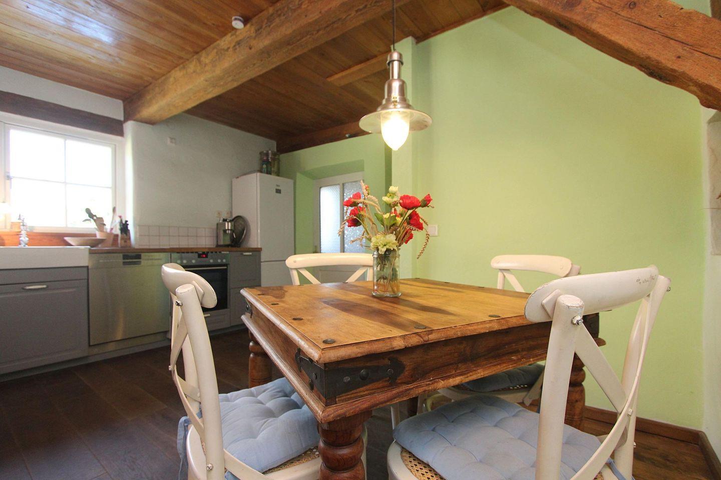 KÜCHE // separate Küche, 4-Felder Ceranherd (Induktion) mit Backofen, Spülmaschine, Kühlschrank mit Gefrierfach, Toaster, Wasserkocher, Kaffeemaschine, reichlich Besteck, Geschirr und Küchenutensilien ++