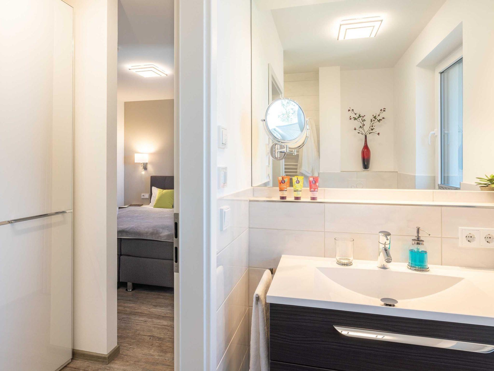 Ihnen steht ein PKW-Stellplatz unter dem Carport kostenfrei zur Verfügung. Weitere Parkplätze in etwa 250 m Entfernung sind vorhanden. Das WLAN-Netz nutzen Sie kostenfrei. Auf Wunsch stellen wir Ihnen einen Hochstuhl und ein Babyreisebett gegen Gebühr zur Verfügung. Im Souterrain des Hauses können Sie die Waschmaschine und den Trockner gegen Gebühr nutzen. Ihre Fahrräder stellen Sie sicher im abschließbaren Fahrradraum unter (Steckdose für E-Bikes vorhanden). Die Wellness- und Freizeitbereiche (Sauna, Infrarotkabine, Ruheraum, Fitnessraum mit Tischtennisplatte) befinden sich im Souterrain des Hauses und können kostenlos genutzt werden.