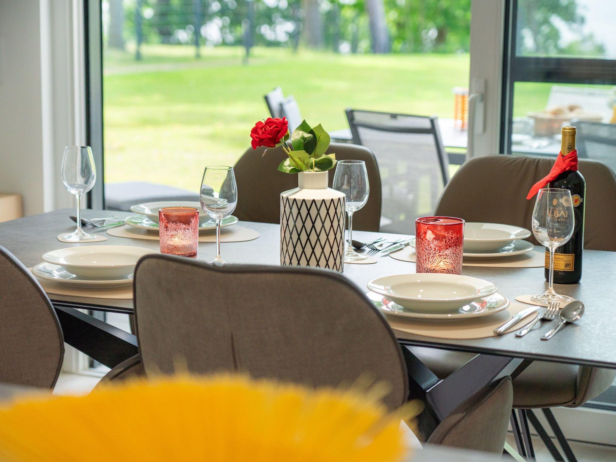 Diese im Jahr 2024 fertiggestellte Ferienwohnung verfügt über eine Wohnfläche von 112 m² und befindet sich im Haus 8, das etwa 400 Meter von den anderen „Oase am Haff“-Häusern entfernt auf einem separaten Grundstück in gleicher Südlage liegt.