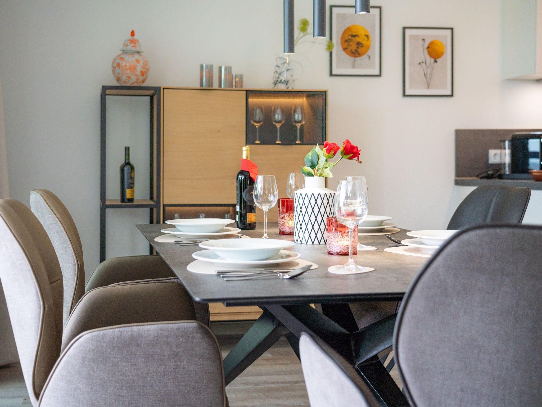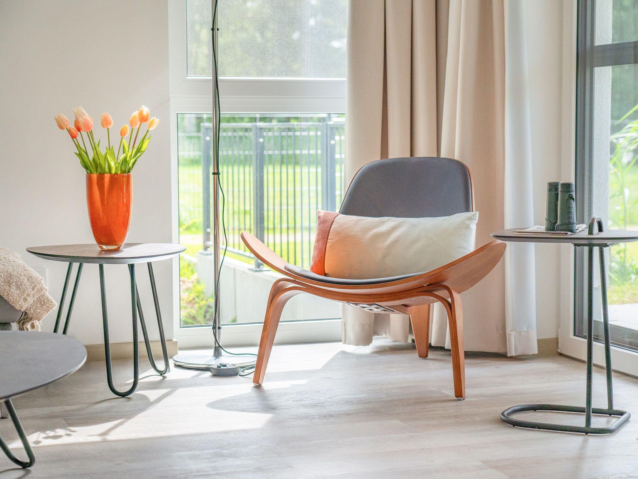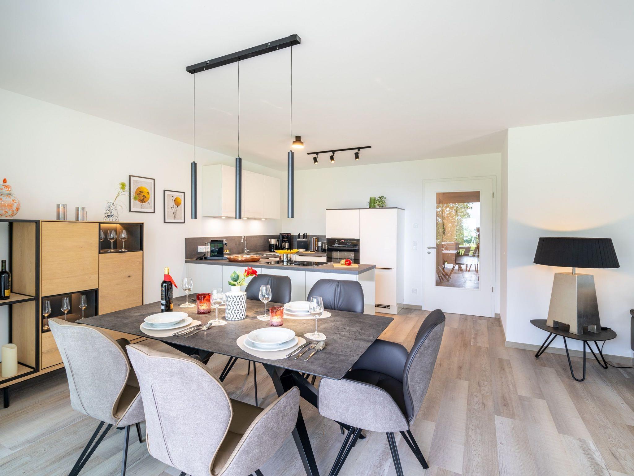 Erleben Sie eine verdiente Auszeit in der Terrassenwohnung „See-T-Raum 1“. Diese stilvolle Ferienwohnung im Haus 8, das im Juli 2024 neu eröffnet wurde, verspricht friedliche Stille und einen spektakulären Ausblick. Genießen Sie die Ruhe dieses idyllischen Rückzugsorts und entspannen Sie sich in vollen Zügen.