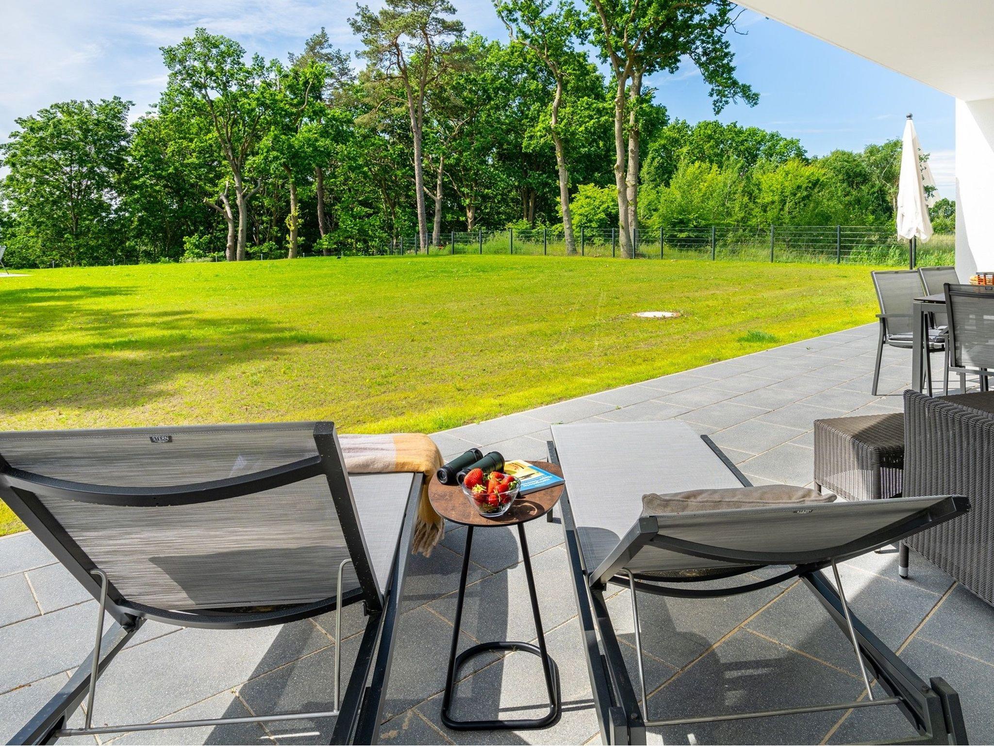 Der Gartenbereich zur Südseite wurde als Ruhezone mit Verweilmöglichkeiten auf der gemütlichen Terrasse gestaltet. Hier haben Sie einen fantastischen Blick auf das Haff und können entspannte Momente genießen.