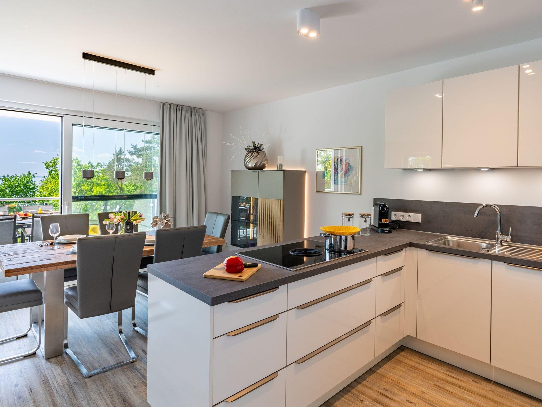 Das Induktionskochfeld mit Bora-Abzug ermöglicht Ihnen beim Kochen einen ungestörten Blick auf das Wasser ? einfach fantastisch!