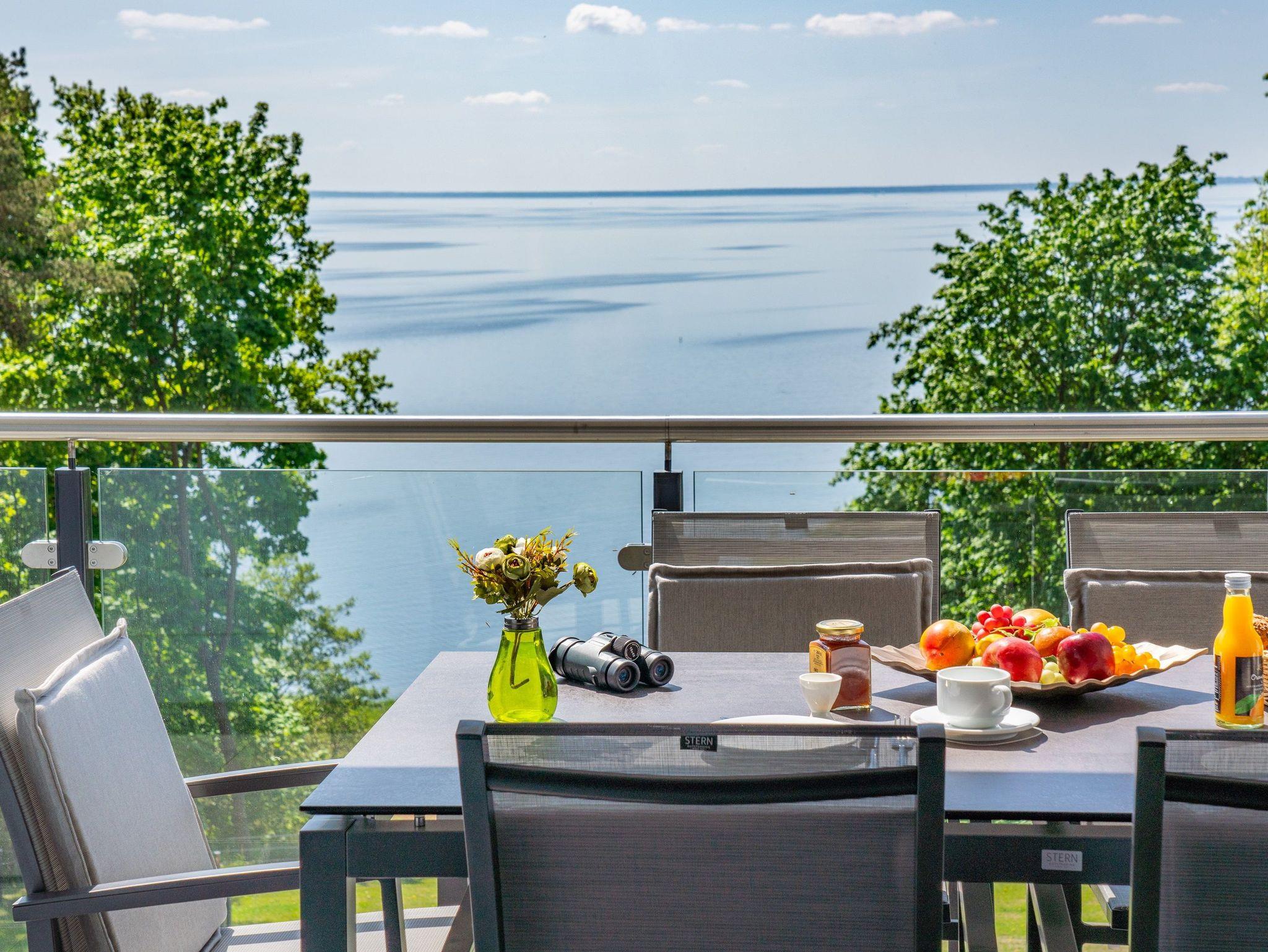 Freuen Sie sich auf den atemberaubenden Meerblick auf das Stettiner Haff vom 18 m² großen, überdachten Sonnenbalkon, der schnell Ihr Lieblingsplatz in diesem Ferienapartment wird.