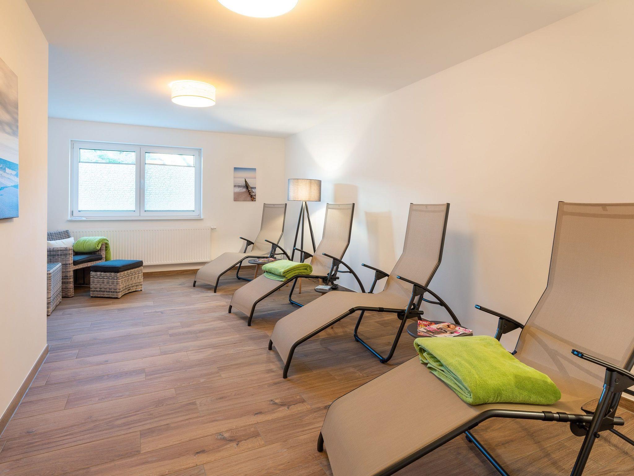 Die Wellness- und Freizeiteinrichtungen wie Sauna, Infrarotkabine, Ruheraum und ein Fitnessraum mit Tischtennisplatte sind im Souterrain des Hauses kostenfrei für alle Gäste des Hauses zugänglich. Zudem stehen Ihnen gegen Gebühr zwei Waschmaschinen und ein Trockner sowie eine Möglichkeit zum Bügeln zur Verfügung.