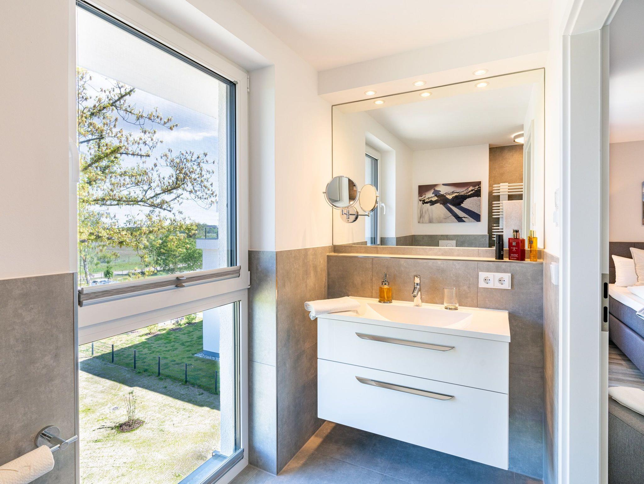 Diese im Jahr 2024 fertiggestellte Ferienwohnung verfügt über eine Wohnfläche von 106 m² und befindet sich im Haus 8, das etwa 400 Meter von den anderen „Oase am Haff“-Häusern entfernt auf einem separaten Grundstück in gleicher Südlage liegt.