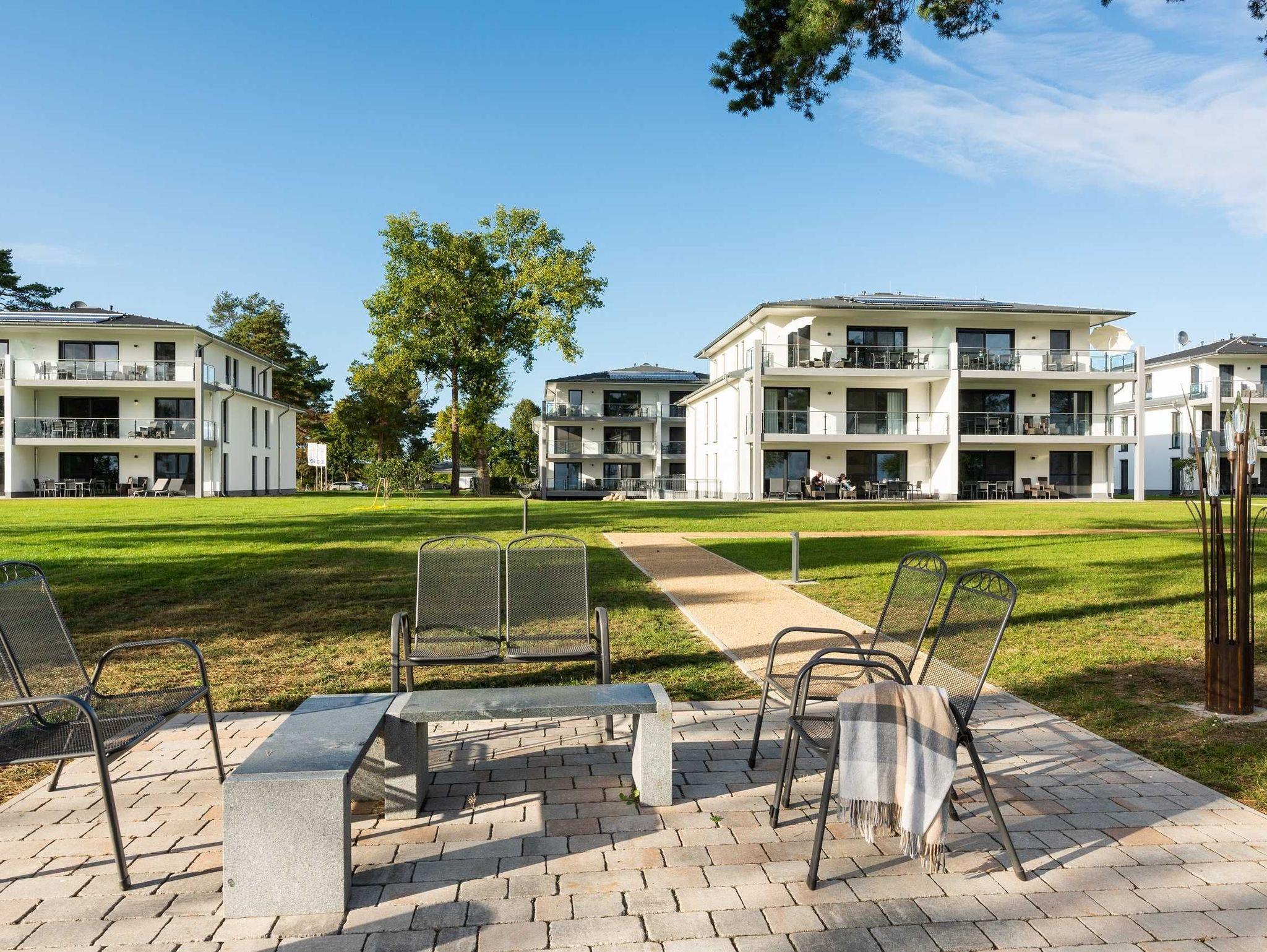Alle Terrassenwohnungen und Appartements sind mit viel Liebe zum Detail in hochwertiger Ausstattung eingerichtet. Von großen Rasenflächen und ebenen Gehwegen umgeben, stehen unsere Ferienhäuser auf die Haffküste ausgerichtet und auf einer weitflächigen Außenanlage zueinander. Unsere Haffterrassen laden mit Sitzgelegenheiten an der Steilküste zum Entspannen bei einem Glas Wein ein.