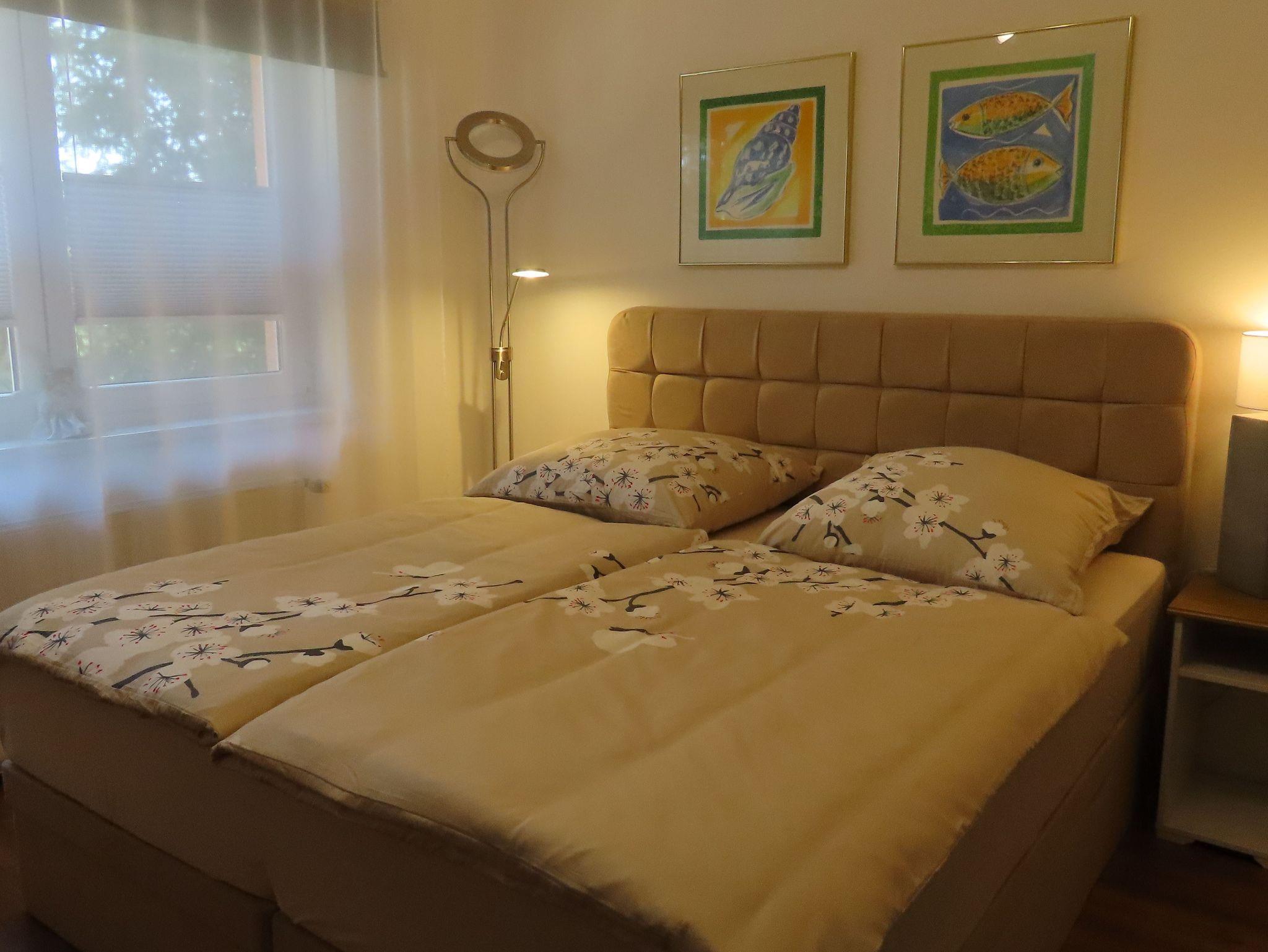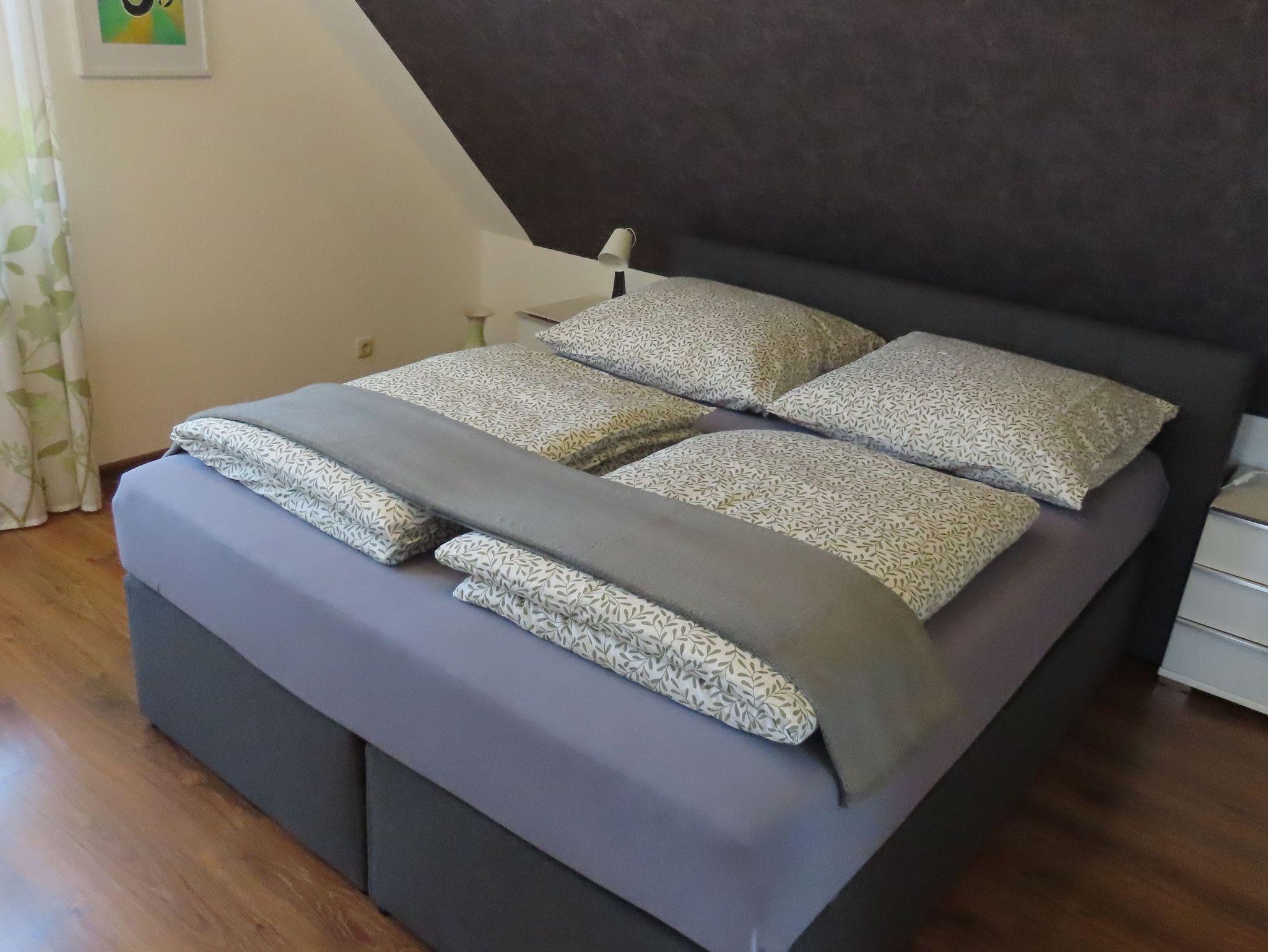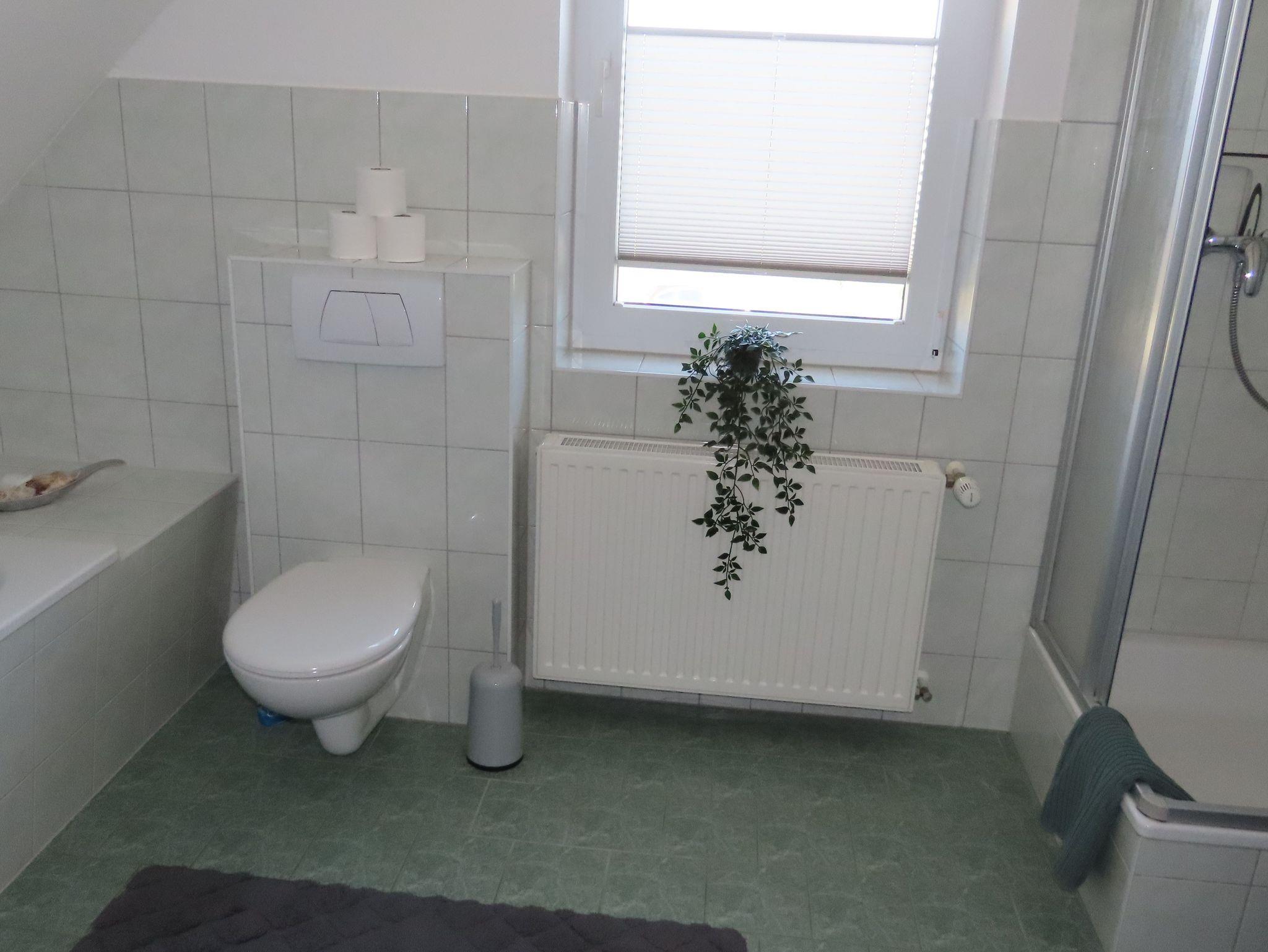 Über eine Treppe erreichen Sie das Obergeschoss. Hier befinden sich 3 weitere Schlafzimmer. Ein Schlafzimmer ist mit einem Doppelbett (1,80 x 2,00 m) sowie einem Einzelbett (0,90 x 2,00 m) ausgestattet. Im dritten Schlafzimmer steht Ihnen ein komfortables Doppelbett (1,60 x 2,00 m) zur Verfügung. Im vierten Schlafzimmer befindet sich eine Schlafsofa (1,80 / 2,00 m). Für Ihren Komfort steht Ihnen im Obergeschoss ein weiteres Tageslichtbad mit Badewanne, Dusche und WC zur Verfügung.