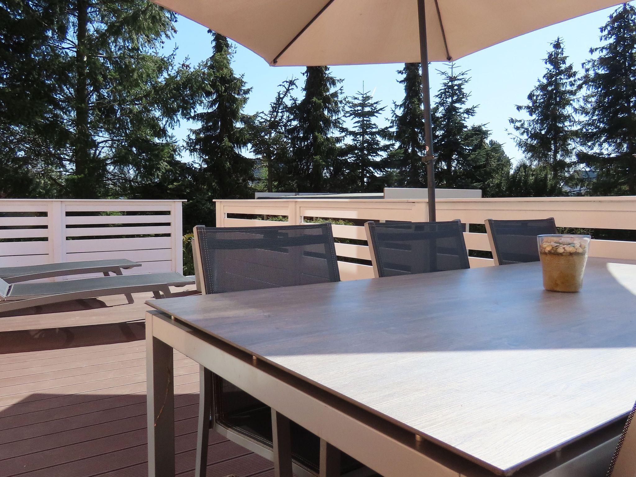 - Sportgeräte (Heimtrainerfahrrad im Obergeschoss; im Garten Klimmzugstange und Dip-Stationen)