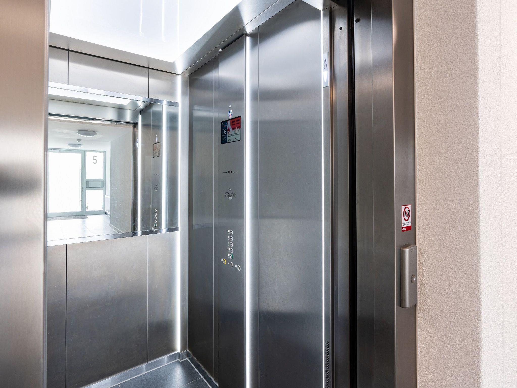 Informationen für Gäste mit Mobilitätseinschränkung: Der Zugang vom Parkplatz zum Hauseingang ist barrierefrei. Die Distanz vom Parkplatz zur Haustür beträgt etwa 30 Meter. Die Breite der Haustür beträgt 100 cm. Die Dichtigkeitsschwelle der Haustür ist etwa 1,5 cm hoch. Der Aufzug im Treppenhaus fährt jede Etage, auch die Saunalandschaft im Obergeschoss, an. Die Türbreite des Aufzugs beträgt 90 cm, die Tiefe beträgt 130 cm. Die Wohnungstür weist eine Breite von 90 cm auf. Die Breiten der Zimmertüren liegen bei 80 cm (Ausnahme: Türbreite von der Abstellkammer beträgt 70 cm). Im Badezimmer beträgt die Breite der Duschtür etwa 80 cm, die Dichtigkeitsschwelle ist etwa 0,5 cm hoch. Auf Wunsch kann ein Duschhocker kostenfrei zur Verfügung gestellt werden. Der Waschtisch ist nicht unterfahrbar. Haltegriffe sind nicht vorhanden. Das Bett weist eine Höhe von 55 cm auf und ist unterfahrbar (max. 7 cm). Die Balkontür ist zweiflügelig und weist eine Schwelle von etwa 15 cm auf (nicht barrierefrei). Das an der Balkontür befindliche Fliegengitterschiebeelement lässt die Balkontür auf eine Breite von etwa 70 cm öffnen. Der Saunabereich im Dachgeschoss ist mit dem Aufzug erreichbar. Im Dachgeschoss ist eine Sauna mit dem Rollstuhl befahrbar, die Türbreite beträgt 90 cm. Für das Betreten der Dachterrassen müssen zwei Stufen passiert werden. Das Betreten des Südbalkons im Dachgeschoss ist barrierefrei möglich. Die Freizeitbereiche im Untergeschoss des Nachbarhauses sind komplett barrierefrei gestaltet. Die Türbreiten liegen bei 90 cm.