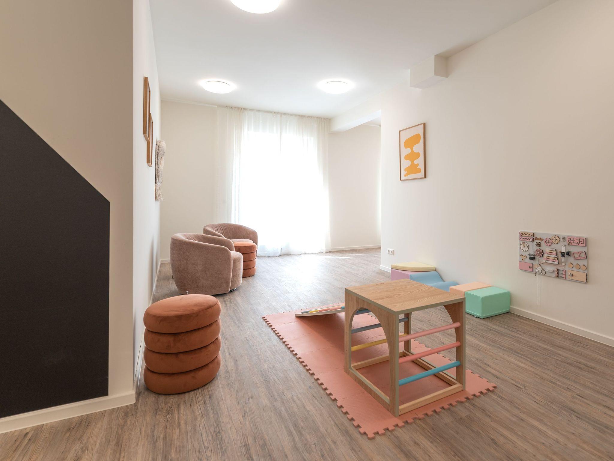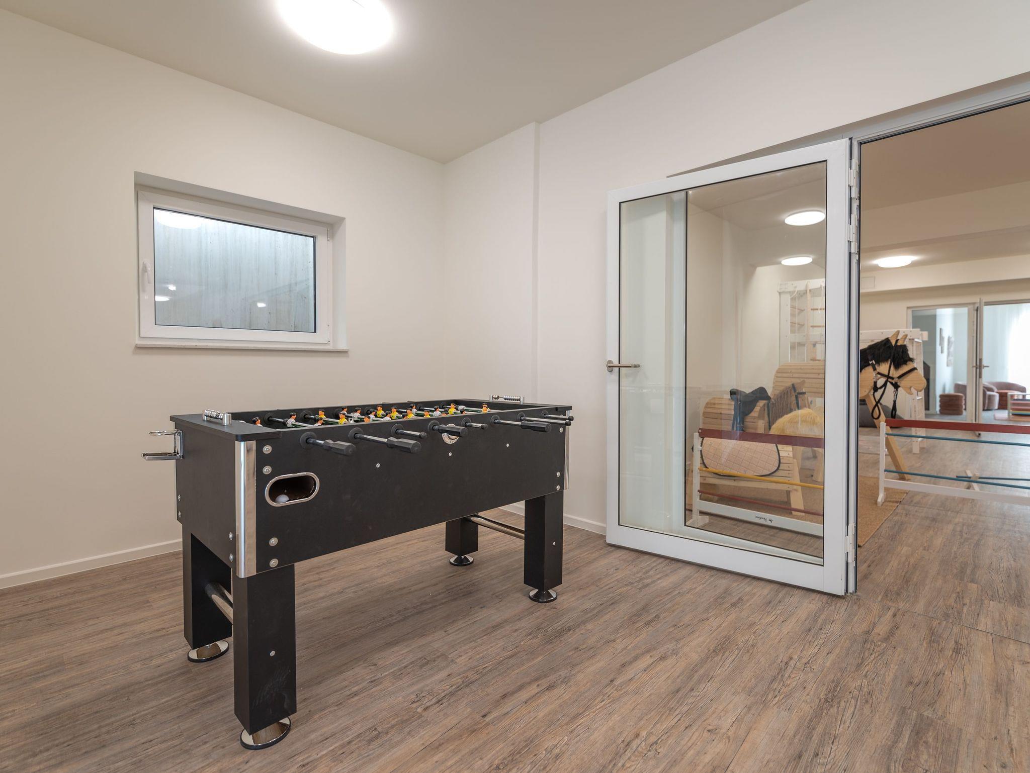 Im Dachgeschoss erwartet Sie der hauseigene Wellnessbereich mit zwei Saunen, einem stilvollen Ruheraum und einer Dachterrasse mit herrlichem Ausblick. Ein großzügiger Fitnessraum mit Kardio- und Kraftgeräten sowie Freihanteln steht ebenfalls im Untergeschoss zur Verfügung. Für wetterunabhängige Unterhaltung für Groß und Klein sorgt der sehr große Gemeinschaftsbereich im Keller mit Billard, Kicker, Tischtennis und einer Kinderspielraum alles kostenfrei nutzbar.